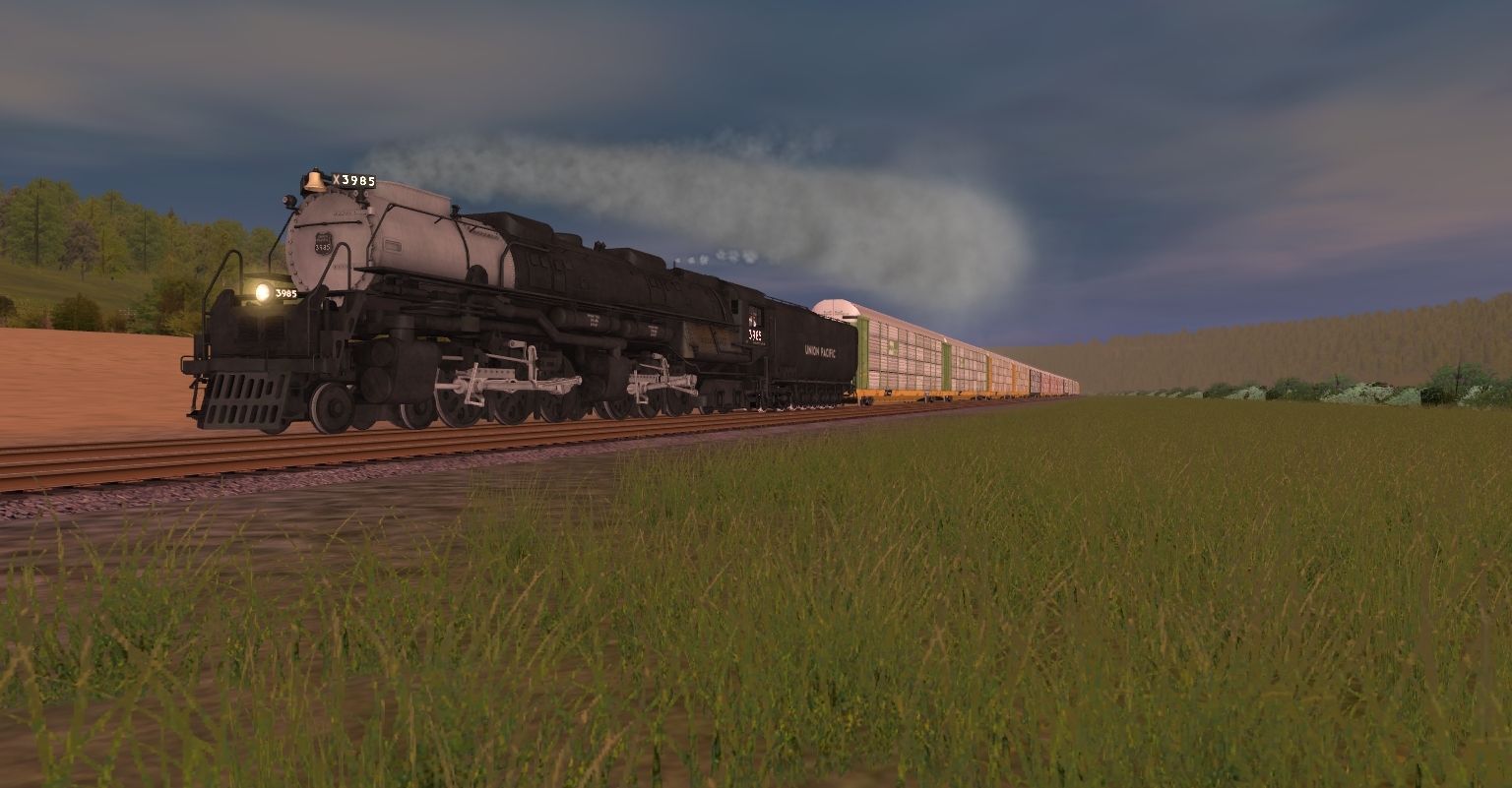 Tags: Trainz: A New Era, Happy Place RR, UP JMB Challenger Clean, UPRR FEF-3 8444, UP JMB Centipede tender oil Clean, 89Ft Autorack BN, 89Ft Autorack BNSF, 89Ft Autorack CN, 89Ft Autorack CN 2, 89Ft Autorack CR, 89Ft Autorack CSX, 89Ft Autorack GT, 89Ft Autorack NS