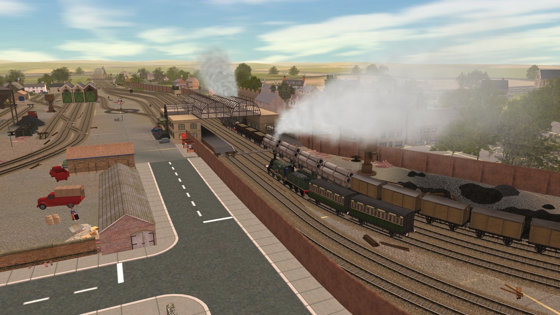 Tags: Trainz: A New Era, IoS - The Kellsthorpe Extension, Emily the Stirling Engine 2012, Donald the Caledonian Twin Engine, Douglas the Caledonian Twin Engine, Old Coach - 3rd Class, Sodor Box Van - Brown, Old Coach - 1st Class, Sodor CGI Flatbed Baked, Emily's Tender 2010, Troublesome Truck 2012 (Face 5), Donald the Caledonian Twin Engine's Tender, NWR Ballast Hopper (riveted)