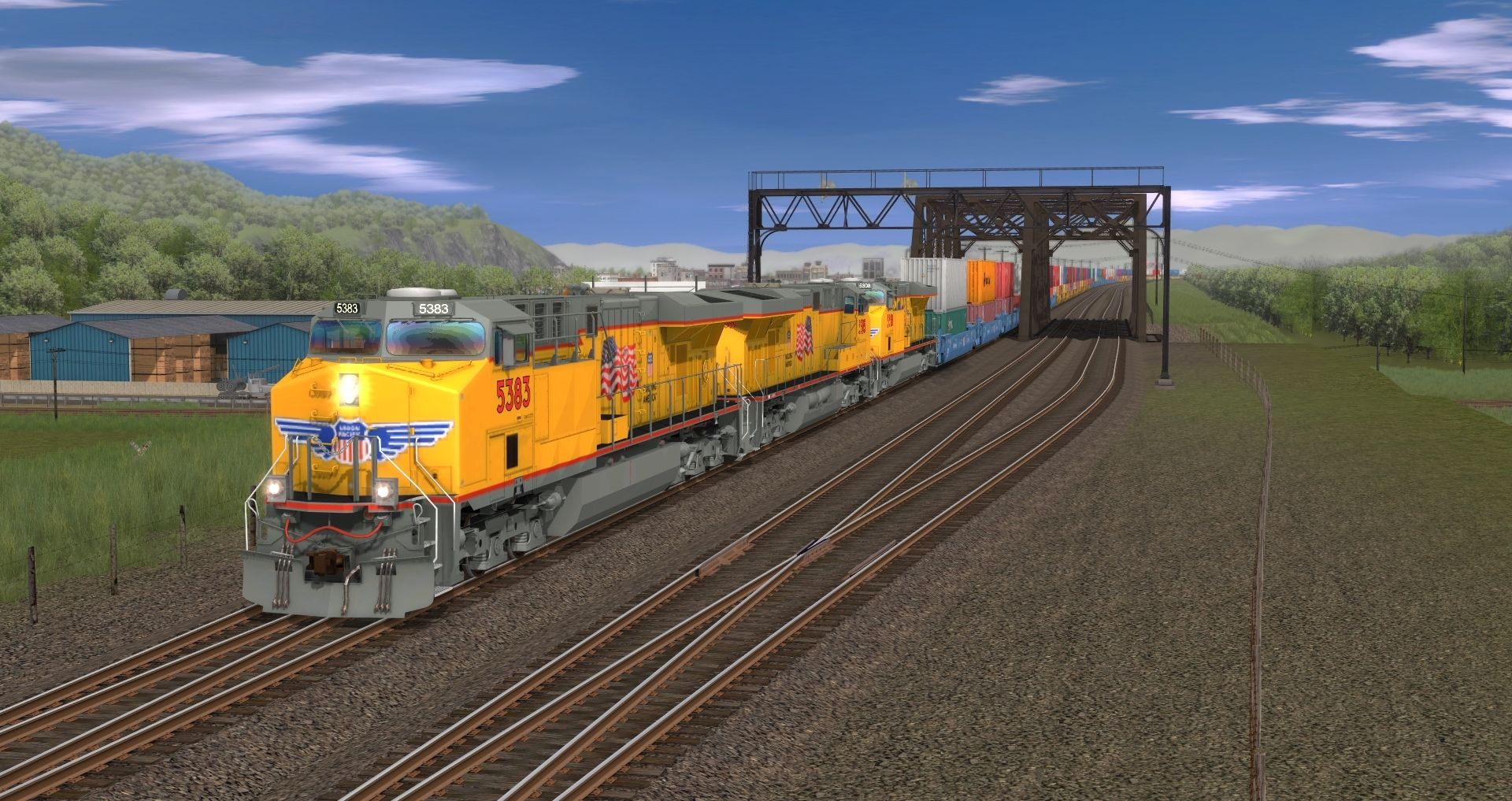 Tags: Trainz: A New Era, Iron Horse Valley, Default, UP ES44AC, 53ft Pacer Wellcar Weathered (Single), 53ft Pacer Wellcar (Single), TTX 53 Maxi-IV B, TTX 53 Maxi-IV C, TTX 53 Maxi-IV A, 53ft DTTX Wellcar Weathered (Single), 53ft DTTX Wellcar (Single), AP53 Wellcar FEC Weathered, AP53 Wellcar FEC