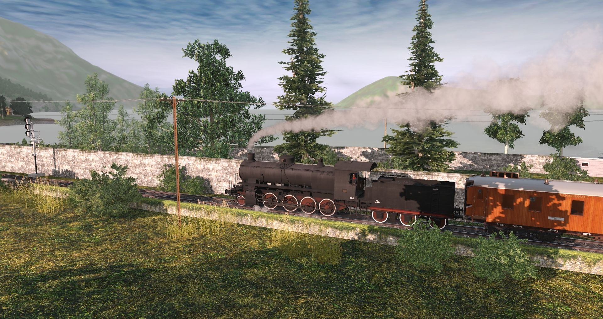 Tags: Trainz Railroad Simulator 2019, Sebino Lake Italy (1980s), Pro Trainz®: 'Orient Express Part 1' by 3DZUG, FS Gr 740.143, FS Gr 740.143 tender 3'T12, 3DZ OExpress (PBR) Baggage, 3DZ OExpress (PBR) Sleeper, 3DZ OExpress (PBR) Diner, FS Carro Gbhs 2