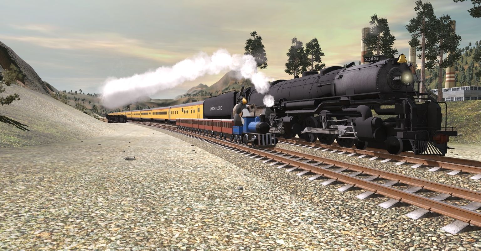 Tags: Trainz Railroad Simulator 2019, Kickstarter County 2, Toy Train - Locomotive (Wallace and Gromit) TRS19, UP JMB CSA-1 3808, Toy Train - Tender (Wallace and Gromit) TRS19, UP JMB CSA 20-C Oil Tender Black, Toy Train - Coach (Wallace and Gromit) TRS19, up Lightweight COLA Baggage Aux Power Dorm, UP Lightweight 1941 COLA Articulated Chair Las Vegas, UP Lightweight 1941 COLA Articulated Chair Salt Lake, UP Lightweight 1941 COLA Lounge Mission Inn, UP Lightweight 1941 COLA Diner Biltmore, UP Lightweight 1941 COLA Lounge Little Nugget