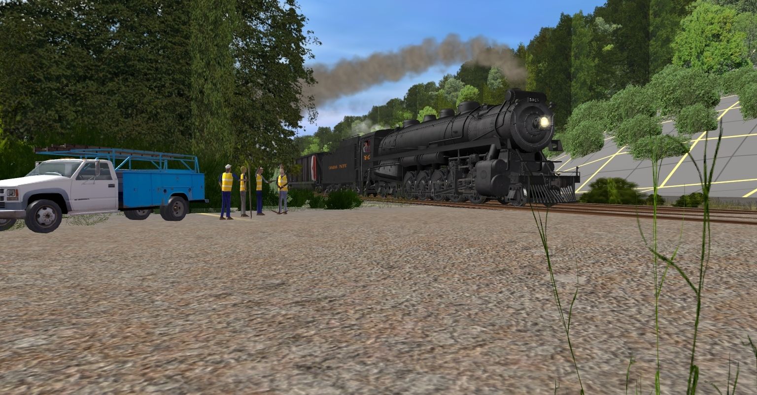Tags: Trainz: A New Era, Happy Place RR, CP T1a Selkirk Engine V1, CP T1a Selkirk Tender, CP Teoli Gondola Black, CP Wood Caboose V2