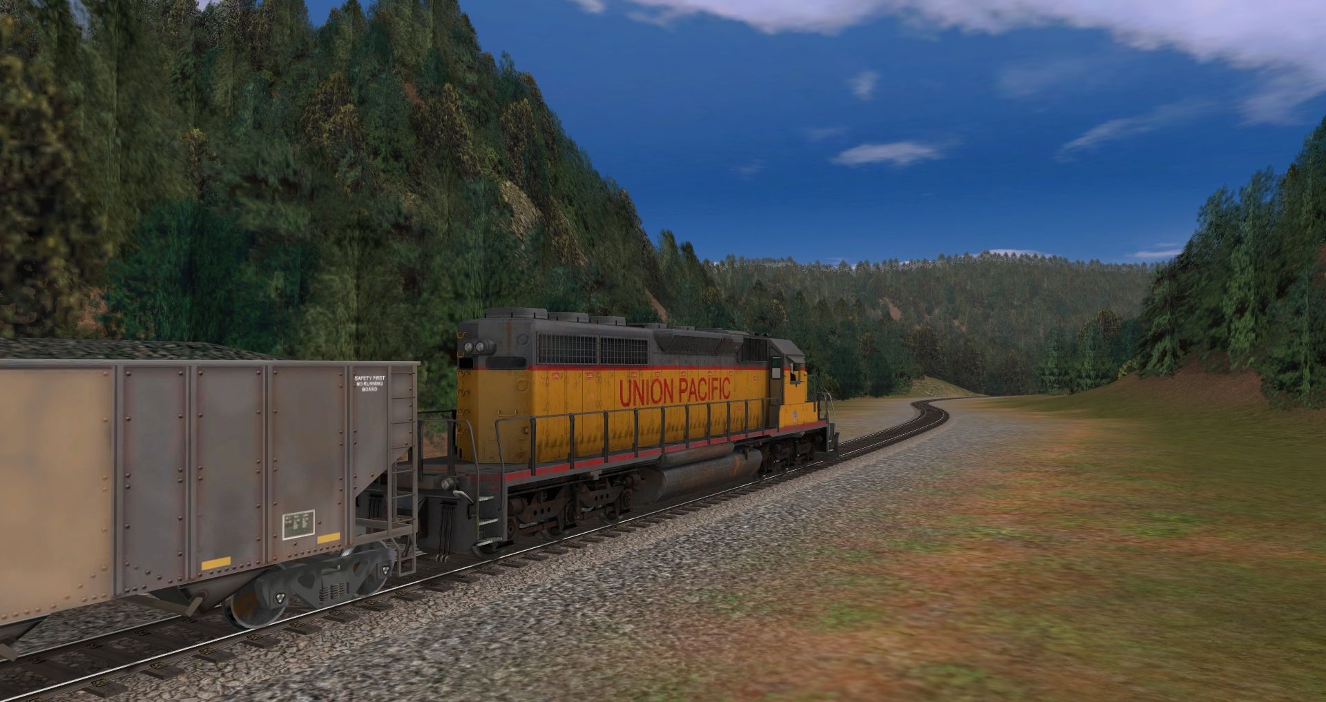 Tags: Trainz: A New Era, CJD Ore Valley, UP SD40-2, BPRR 4 Bay Hopper 1, BPRR 4 Bay Hopper 3, BPRR 4 Bay Hopper 4, BPRR 4 Bay Hopper 2, 24 Merced Mine Flat Car, 24 Merced Ore Car Empty, 24 Merced Ore Car Loaded