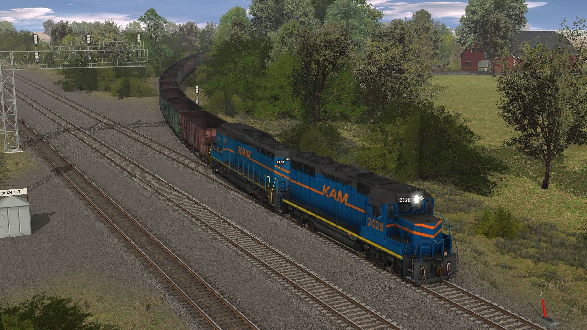 Posted by: epa | Posted:2019-02-15 18:50:35 Caption: Tags: Trainz: A New Era, Konawa & Arbuckle Mtn, Storage Run 1, KAM GP35, KAM GP30, RPPX 100 Ton Hopper
