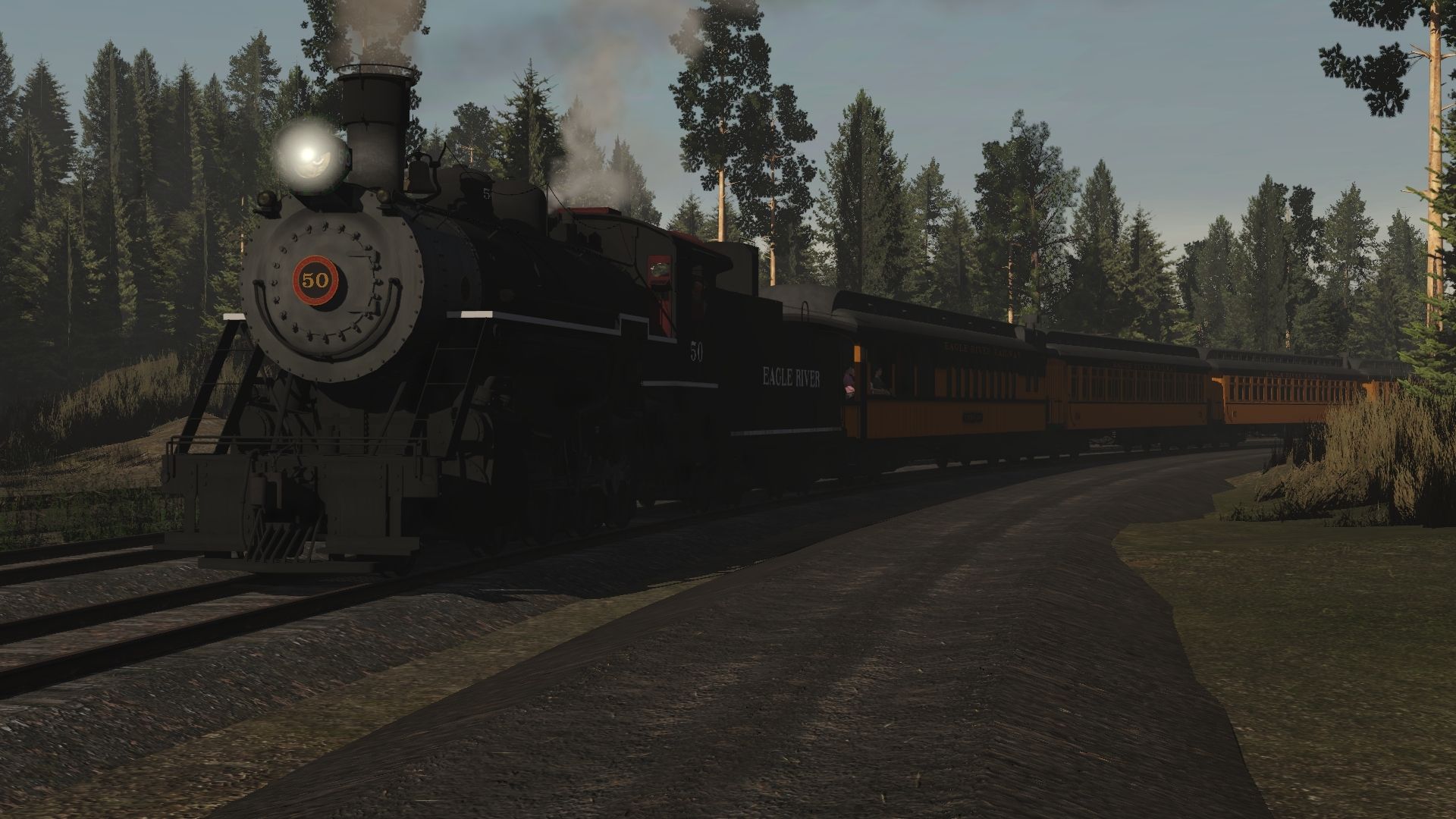 Tags: Trainz Railroad Simulator 2019, Eagle River Railway, Default, Eagle River 2-8-0 Engine 2, Eagle River 2-8-0 Tender 2, Eagle River 07 Wood Observation, Eagle River 02 Wood Coach, Eagle River 01 Wood Combine