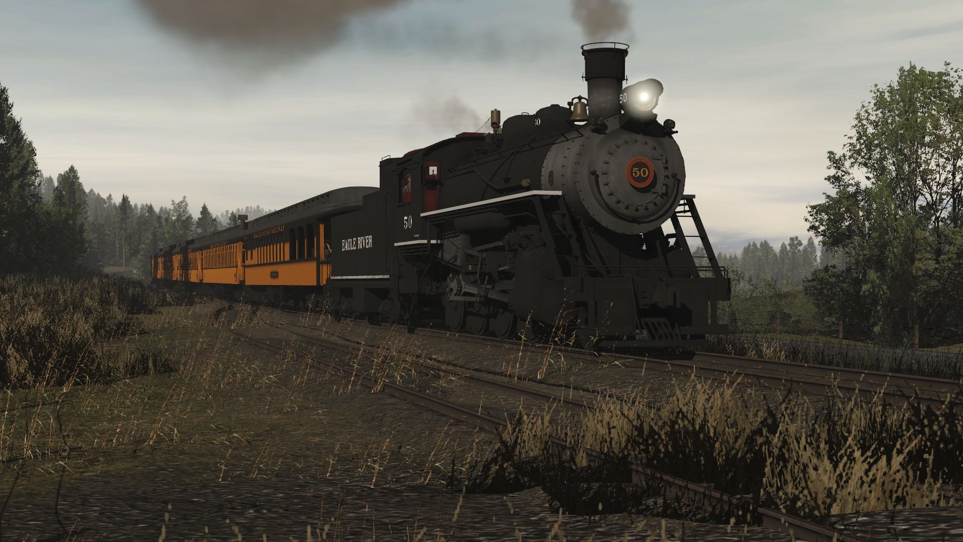 Tags: Trainz Railroad Simulator 2019, Eagle River Railway, Default, Eagle River 2-8-0 Engine 2, Eagle River 2-8-0 Tender 2, Eagle River 07 Wood Observation, Eagle River 02 Wood Coach, Eagle River 01 Wood Combine