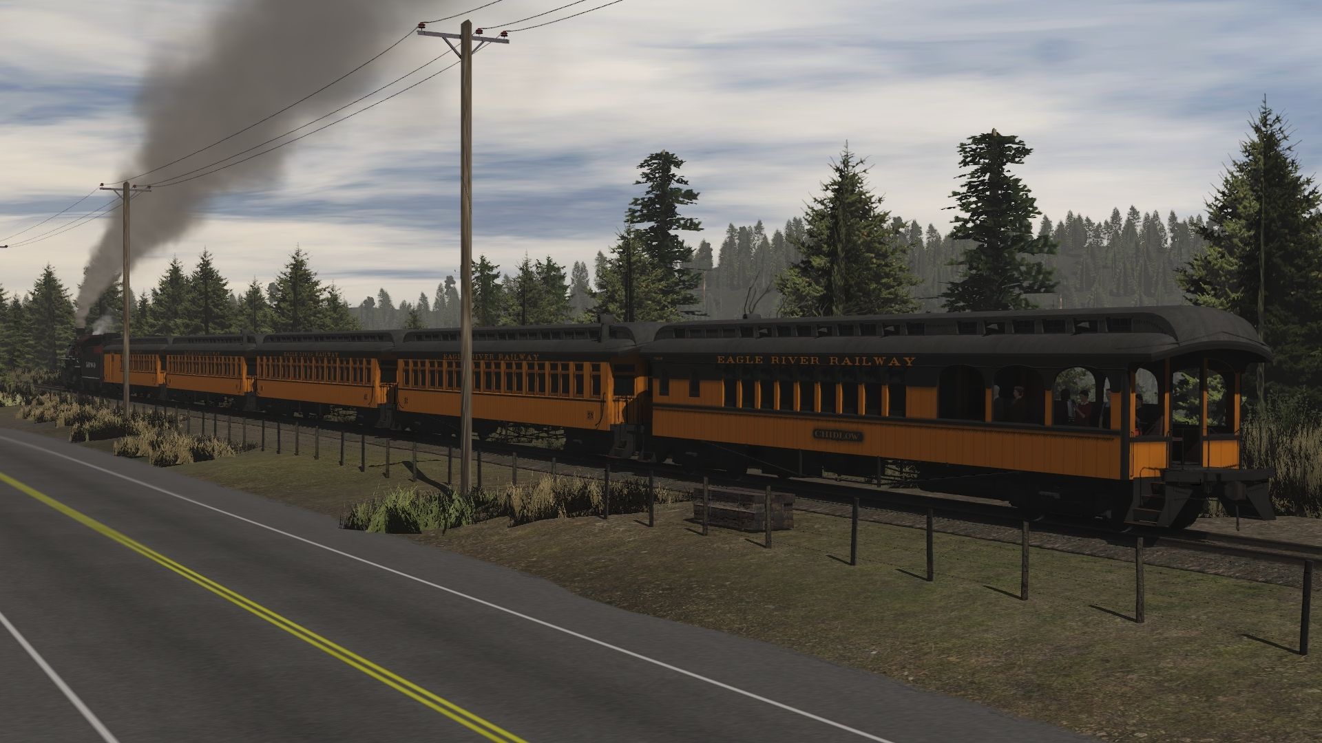 Tags: Trainz Railroad Simulator 2019, Eagle River Railway, Default, Eagle River 2-8-0 Engine 2, Eagle River 07 Wood Observation, Eagle River 02 Wood Coach, Eagle River 01 Wood Combine, Eagle River 2-8-0 Tender 2