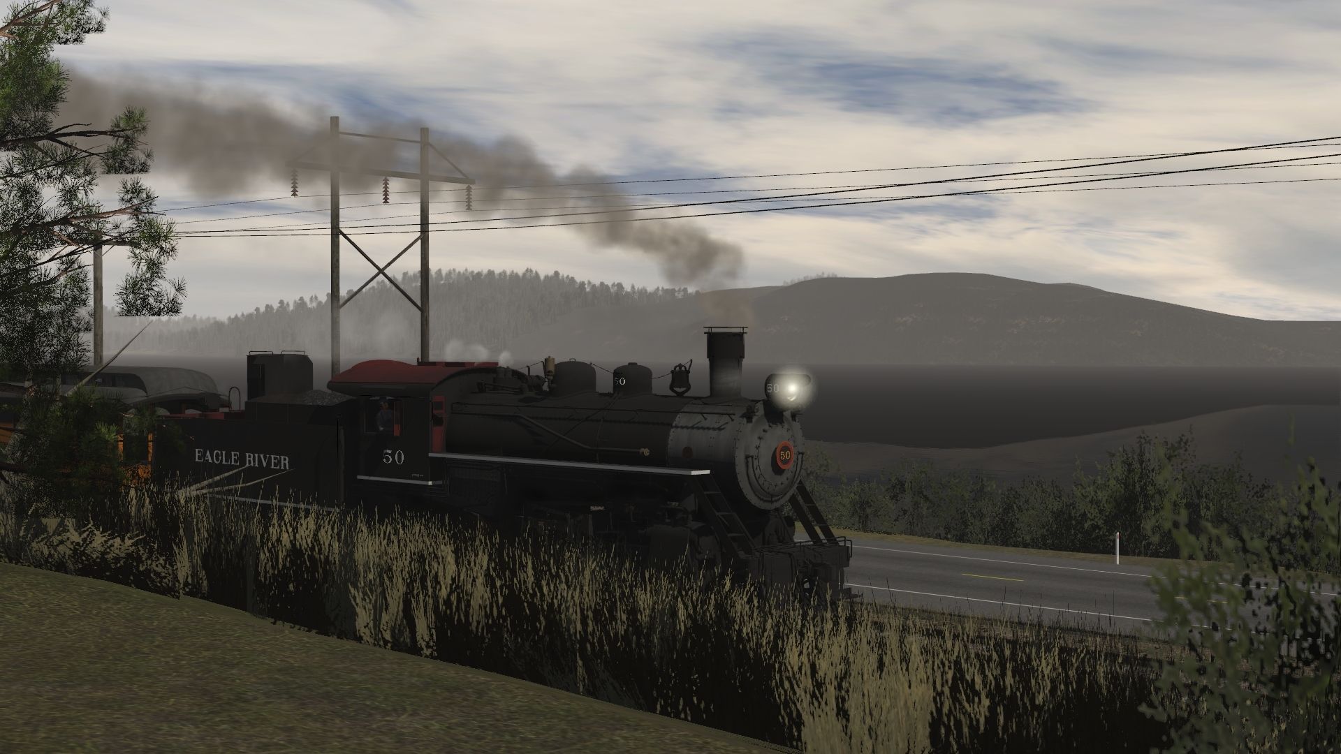 Tags: Trainz Railroad Simulator 2019, Eagle River Railway, Default, Eagle River 2-8-0 Engine 2, Eagle River 2-8-0 Tender 2, Eagle River 07 Wood Observation, Eagle River 02 Wood Coach, Eagle River 01 Wood Combine