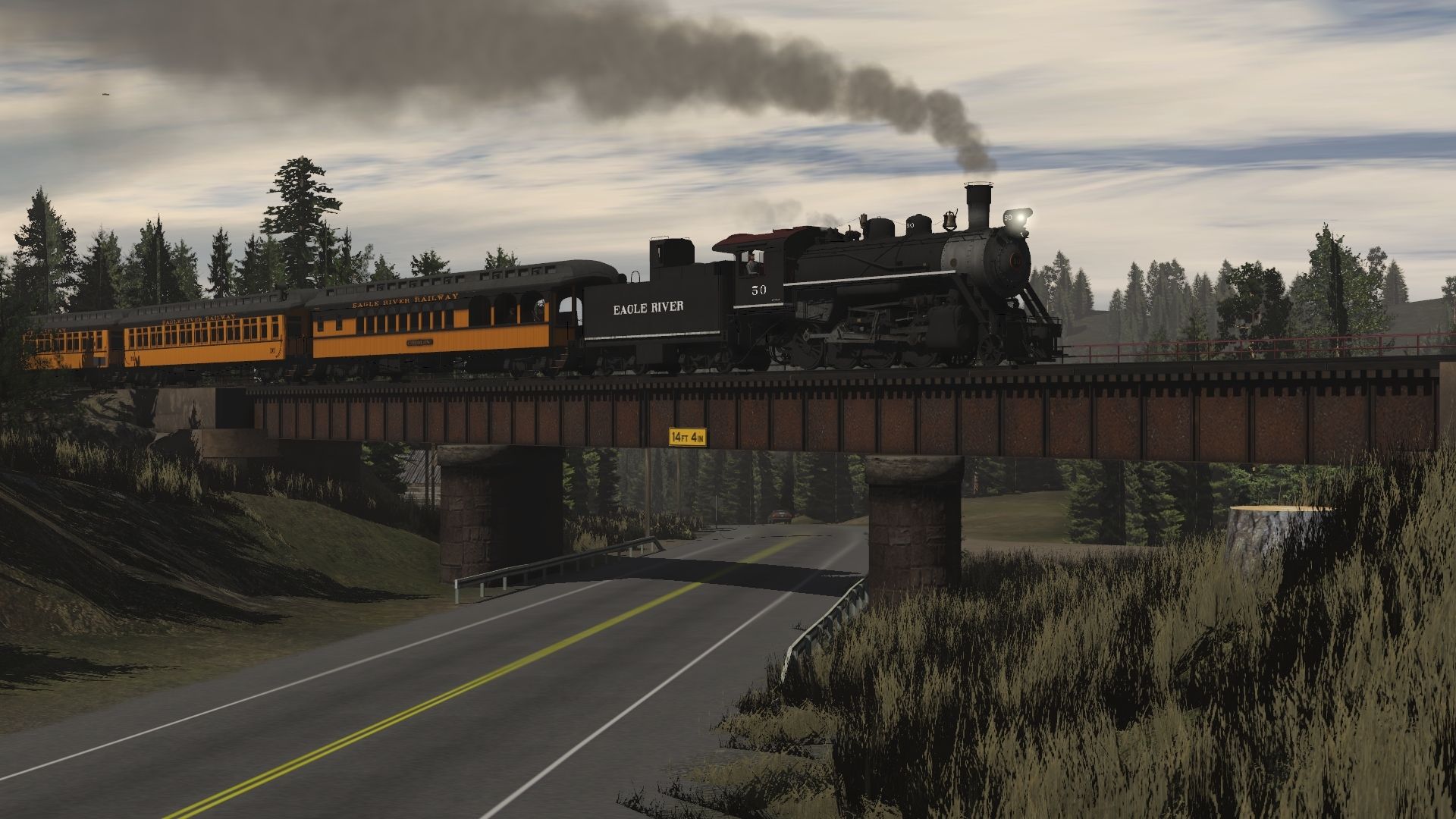 Tags: Trainz Railroad Simulator 2019, Eagle River Railway, Default, Eagle River 2-8-0 Engine 2, Eagle River 2-8-0 Tender 2, Eagle River 07 Wood Observation, Eagle River 02 Wood Coach, Eagle River 01 Wood Combine