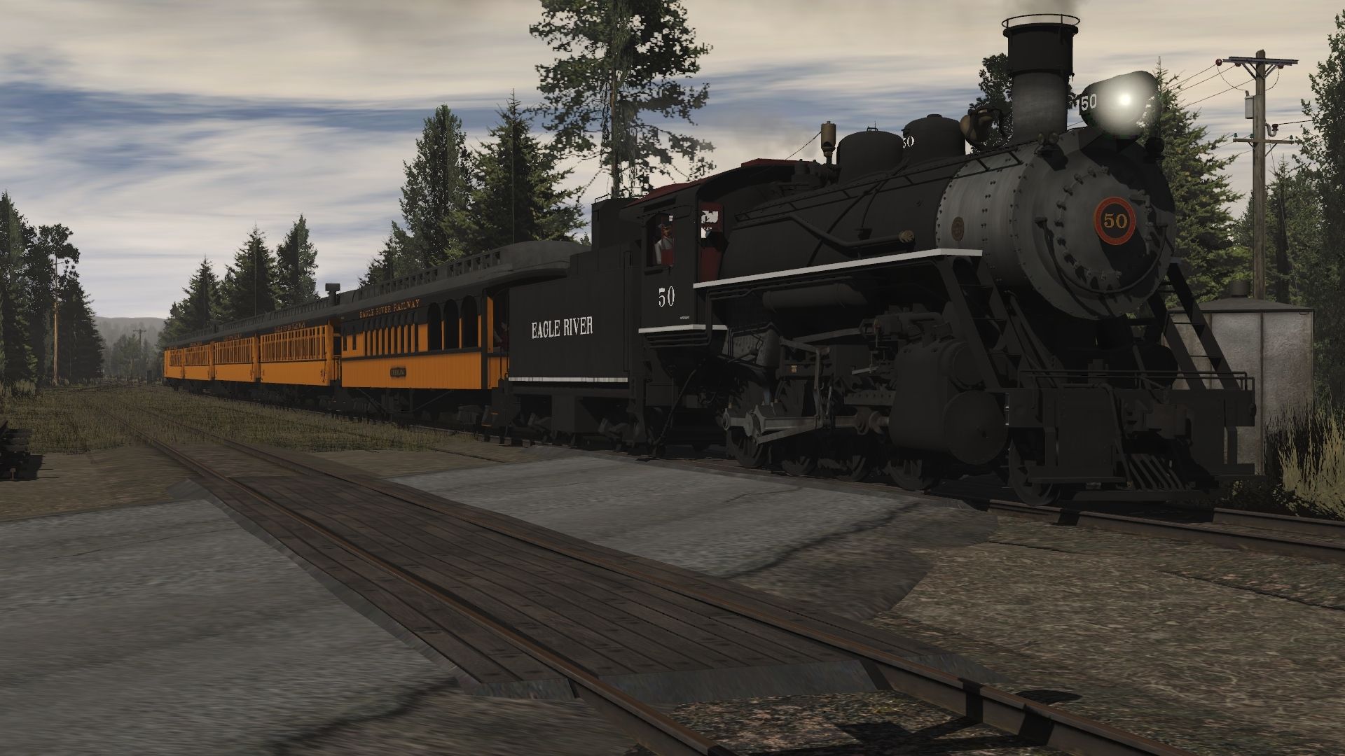 Tags: Trainz Railroad Simulator 2019, Eagle River Railway, Default, Eagle River 2-8-0 Engine 2, ERSX BW9 #30, ALCO 0-6-0T Blank v2, Eagle River 2-8-0 Tender 2, Eagle River 07 Wood Observation, Eagle River 02 Wood Coach, Eagle River 01 Wood Combine, ERSX 54ft flatcar, ERSX Brake Control Car, ERSX 60Ft.9In. woodchip gondola, Generic Bobber Caboose