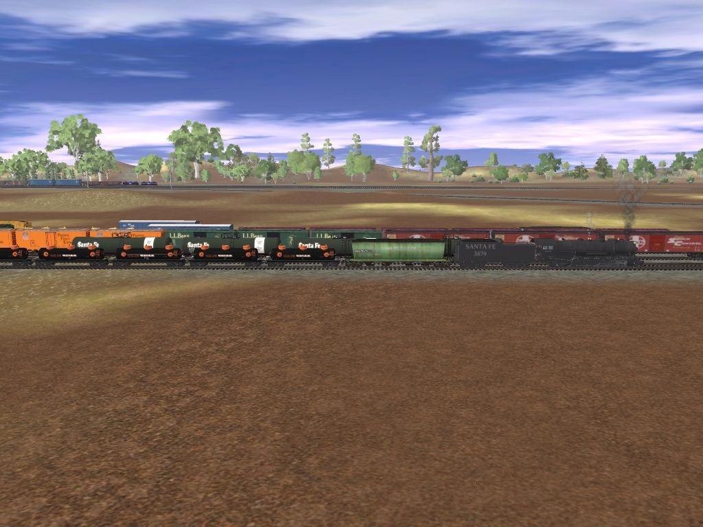 Tags: Trainz: A New Era, SANTA FE MY WAY, FRANK, ATSF Santa-Fe 2-10-2 3879 v9, SW1500 BOSTON & MAINE 1040, ATSF SD45, GBCX Cylindrical Hopper, 3 Dome Tanker-Union 76-V1, ATSF Santa-Fe 3879 tender v9, Boston & Main L.L. Bean 40' Boxcar, 40ft Boxcar GMO 01, 30ft Tanker RAIX 5233, BPRR 4 Bay Hopper 4, 40ft Reefer PFE Union Pacific #d