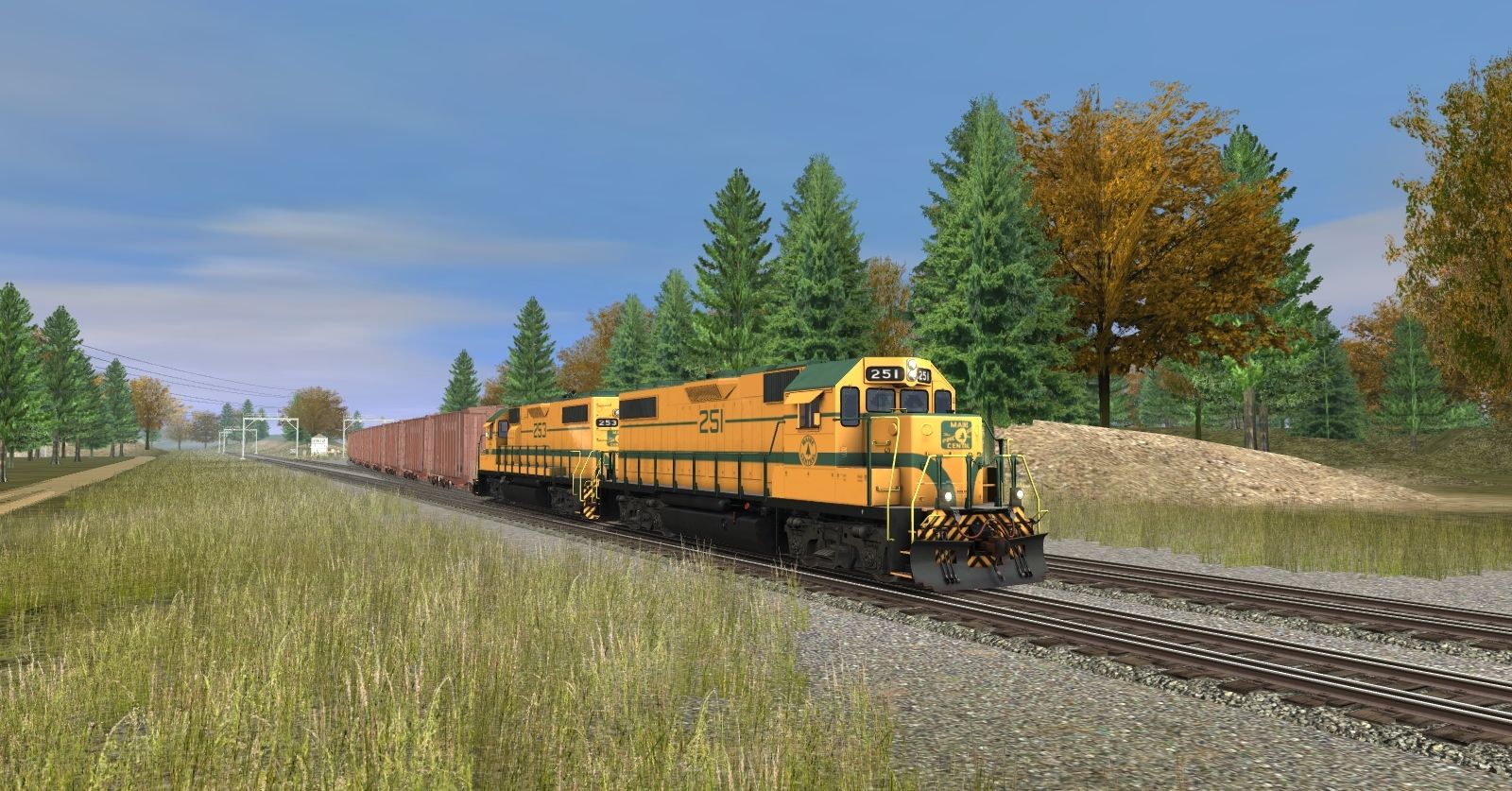 Tags: Trainz: A New Era, Maine Central Portland Division, MEC GP38 251, MEC GP38 253, 2Bay Airslide Hopper CONRAIL b eMFX#, 50ft Boxcar NYC 20029, 50ft Boxcar SLSF 6348, 50ft Boxcar UP #369009, 50ft Boxcar BN #244378, 50ft Boxcar CSXT 137534, 70ton AAR Flatcar PM, 70ton AAR Flatcar C&O, 50ftBoxcar Conrail #M