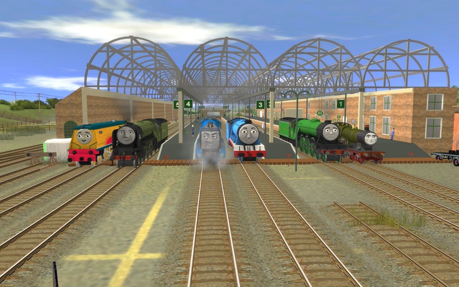 Tags: Trainz: A New Era, Knapford Final Version, Screenshot, Tornado the New Build Engine (Apple Green Livery), Mallard, TTTE - Gordon the Big Engine, CR3D - Rebecca, RWS Flying Scotsman (LNER Double Tender), City of Truro, City of Truro Tender, TTTE - Gordon's Tender, Mallard Tender, Tornado Tender (Apple Green Livery), CR3D - Rebecca Tender