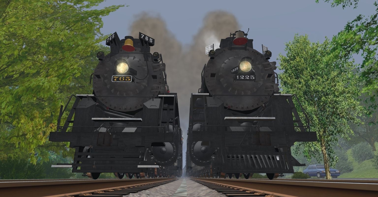 Tags: Trainz: A New Era, Happy Place RR, PM Berkshire Engine, NKP Berkshire Engine, RPPX GP9 chop nose, PM Berkshire Tender, NKP Berkshire Tender, PM Aux Tender MSTX5000, RPPX 100 Ton Hopper, CSX Business Train 01 Dorm, CSX Business Train 02 Coach, CSX Business Train 07 Coach, CSX Business Train 08 Coach