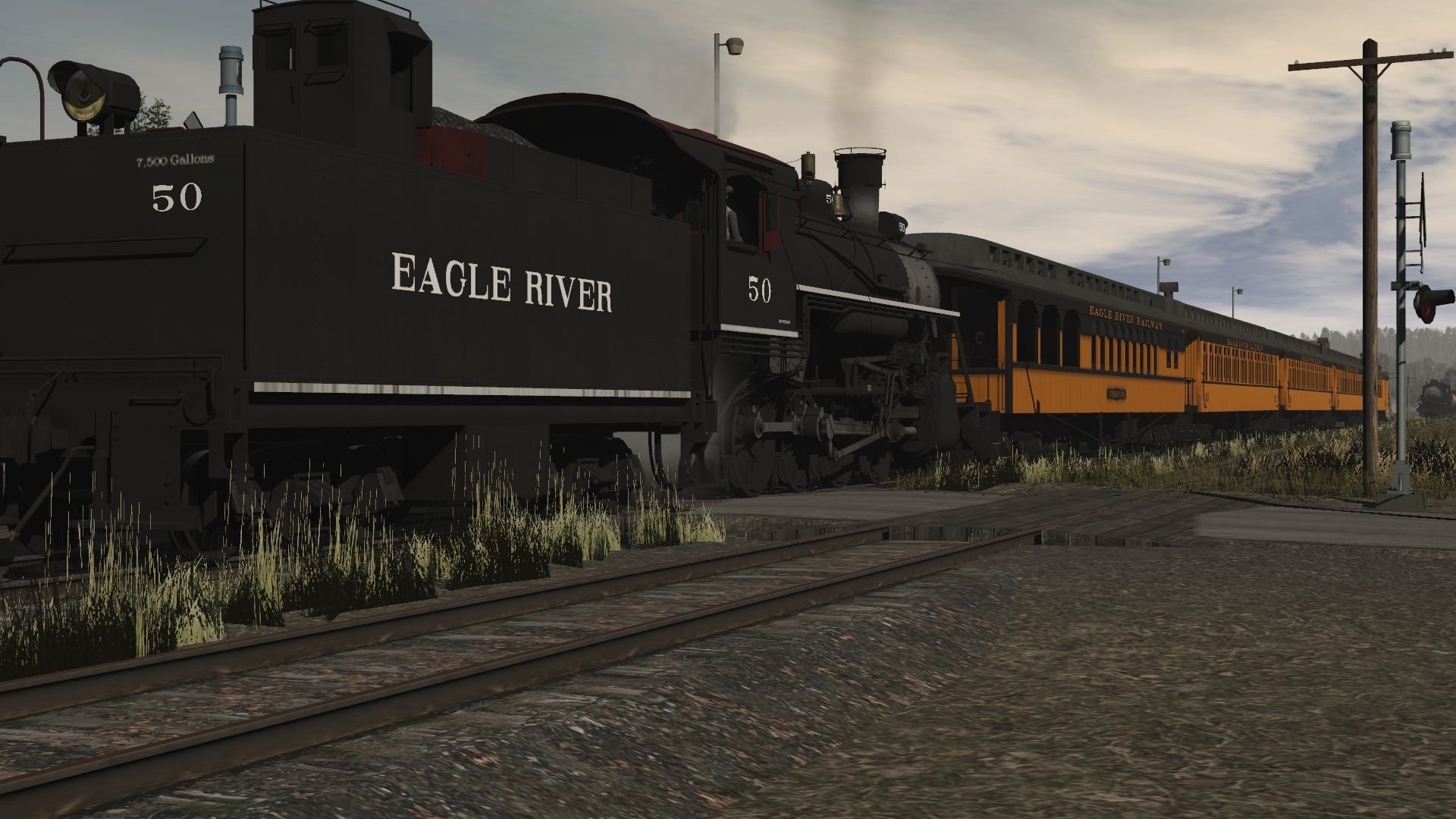 Tags: Trainz Railroad Simulator 2019, Eagle River Railway, Default, Eagle River 2-8-0 Engine 2, Eagle River #20 No Steam, ERSX GMD-1 77 (Ex CN), ERSX GP15T 2021, ERSX GP40-2, Eagle River 2-8-0 Tender 2, Eagle River 07 Wood Observation, Eagle River 02 Wood Coach, Eagle River 01 Wood Combine, Eagle River 06 Open Air Coach, Eagle River #20 tender