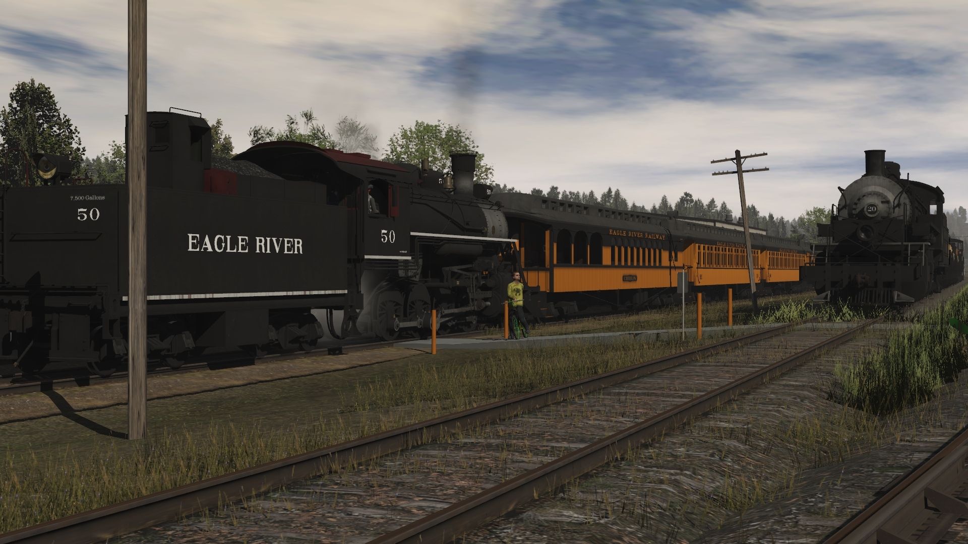 Tags: Trainz Railroad Simulator 2019, Eagle River Railway, Default, Eagle River 2-8-0 Engine 2, Eagle River #20 No Steam, ERSX GMD-1 77 (Ex CN), ERSX GP15T 2021, ERSX GP40-2, Eagle River 2-8-0 Tender 2, Eagle River 07 Wood Observation, Eagle River 06 Open Air Coach, Eagle River #20 tender, Eagle River Skeleton 43ft MLOG, Eagle River 05 Super Dome