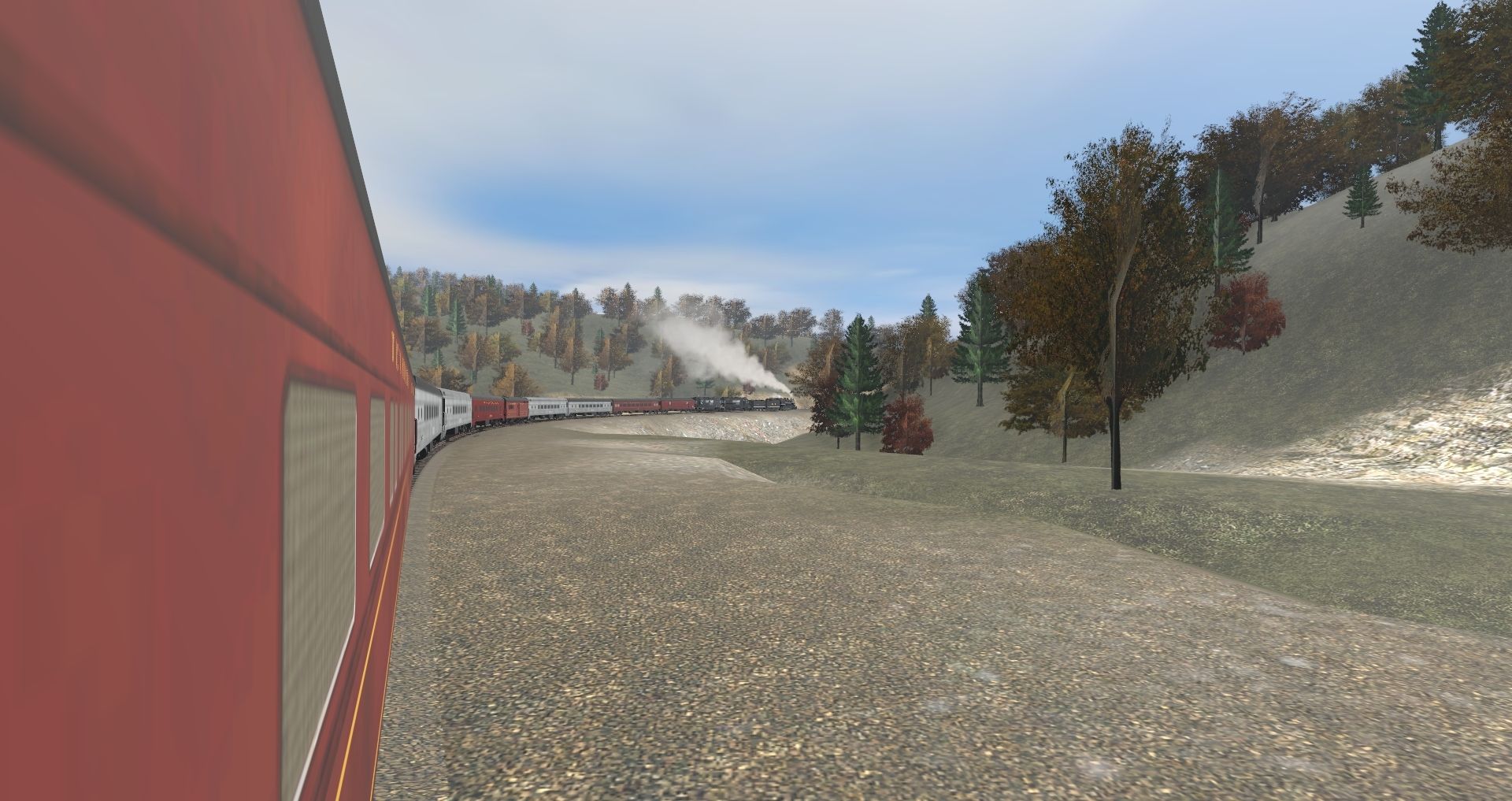 Tags: Trainz Railroad Simulator 2019, The Loops, NS GP38-2, NS GP38-2 LH, Southern 630 Engine, TVRM Observation Eden Isle, Southern Coach Lounge, N&W NS Powhatan Arrow 03 P3 Standard Coach 535, TVRM Tool Car 50, Silver Coach, TVRM Coach Lounge, N&W Tool Car #1407, Southern 630 Aux Tender V1