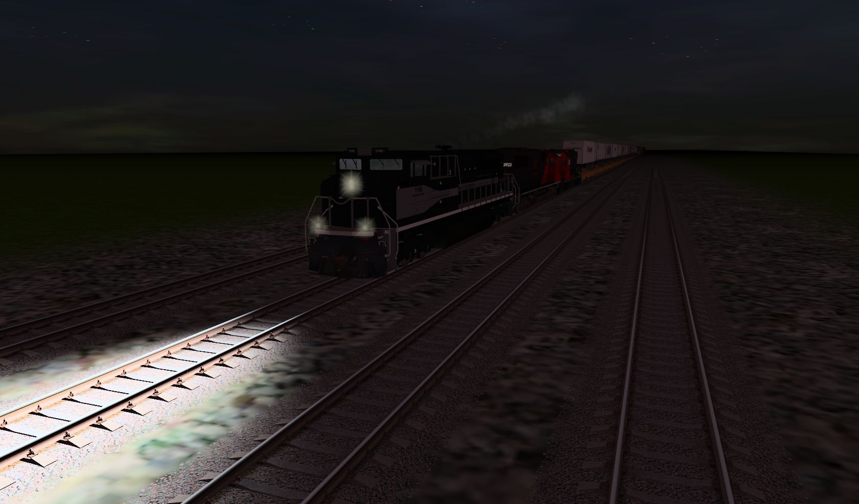 Posted by: DistantHeadlight | Posted:2019-02-23 12:16:11 Caption: Tags: Winbrook & Northern #1140 HU SD70ACe, lead intermodal train 202 late through the depths of night