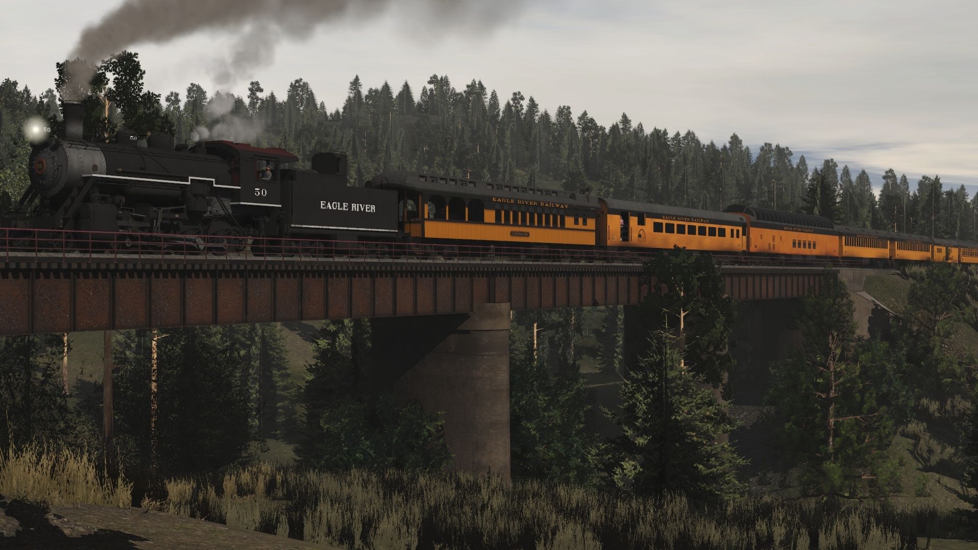 Tags: Trainz Railroad Simulator 2019, Eagle River Railway, Default, Eagle River 2-8-0 Engine 2, ERSX GP40-2, Eagle River 2-8-0 Tender 2, Eagle River 07 Wood Observation, Eagle River 06 Open Air Coach, Eagle River 05 Super Dome, Eagle River 03 Boonton Coach, Eagle River 04 Concession Car, Eagle River 02 Wood Coach, Eagle River 01 Wood Combine