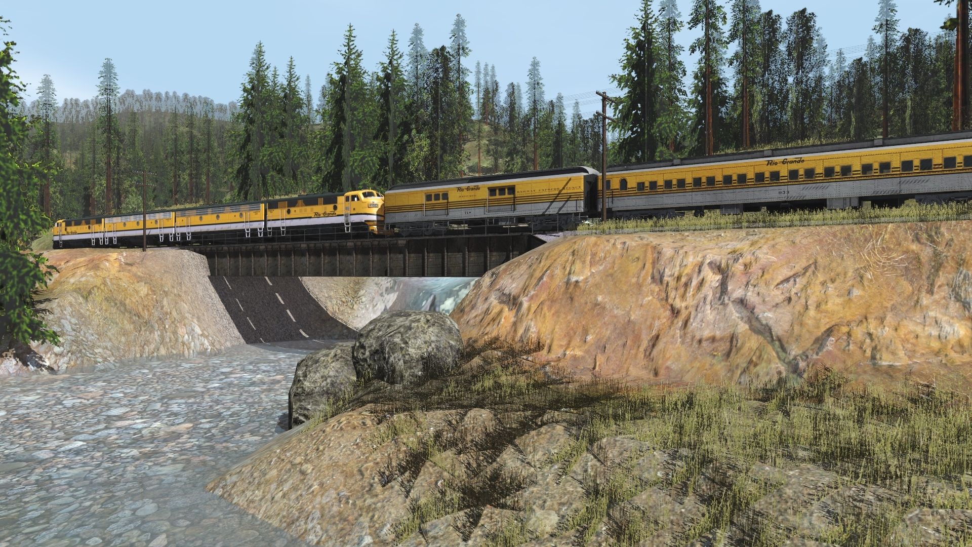 Tags: Trainz Railroad Simulator 2019, C&O Hinton Division-DGRW, Default, EMD F3A D&RGW #5524 (1 Stripe), EMD F7B D&RGW #5692 (1 stripe), EMD F7B D&RGW #5703 (1 stripe), EMD F3A D&RGW #5521 (1 Stripe), D&RGW 900 Series Coach - Prospector, D&RGW 700 Series Baggage - Prospector, D&RGW 1000 Series Coach - Prospector, D&RGW 'Mount' Series Dining Car - Prospector, D&RGW Obs 'Granite Canon
