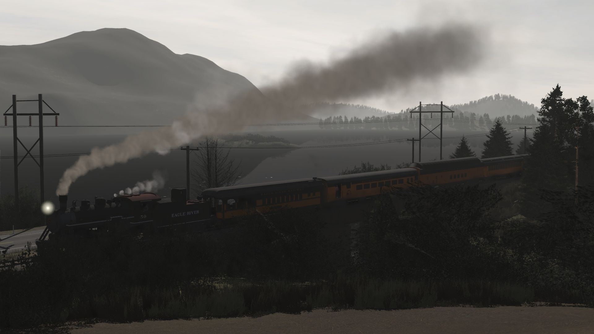 Tags: Trainz Railroad Simulator 2019, Eagle River Railway, Default, Eagle River 2-8-0 Engine 2, ERSX GP40-2, Eagle River 2-8-0 Tender 2, Eagle River 07 Wood Observation, Eagle River 06 Open Air Coach, Eagle River 05 Super Dome, Eagle River 03 Boonton Coach, Eagle River 04 Concession Car, Eagle River 02 Wood Coach, Eagle River 01 Wood Combine