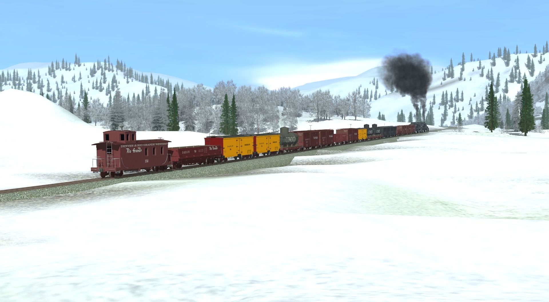 Tags: Trainz: A New Era, Cumbres & Toltec Scenic Railroad V2 [T:ANE] Winter, Default, K-36 #487, K-36 #488, D&RGW Narrogauge Caboose #0540, C.O.N.X.5 Tankcar Weathered, D&RGW 33' Narrowgauge Gondola, D&RGW 30' Narrowgauge Refrigerator, C.O.N.X.5 Tankcar, D&RGW 34' Narrowgauge Stock Car #5948, D&RGW 34' Narrowgauge Stock Car #5961, D&RGW class 17 gon, D&RGW Class 8 ng boxcar