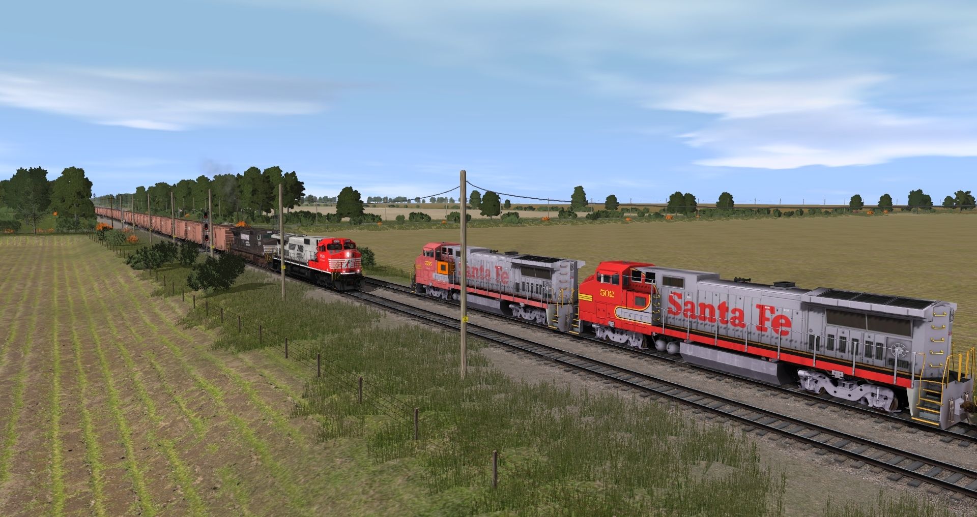 Tags: Trainz: A New Era, Norfolk Southern Yard Module, Norfolk Southern Yard Module - Default, ATSF C30-7, ATSF B40-8W, ATSF B40-8W BNSF Patch Weathered, NS AC44C6CF #8520, NS Dash9 #8929, 57ft Tanker DBUX 301132, 57ft Tanker ACFX 83183, 57ft Tanker ACFX 200401, 57ft Tanker TOTX 1003, NS 50' ACF Boxcar 1, 57ft Tanker NTRX 29017
