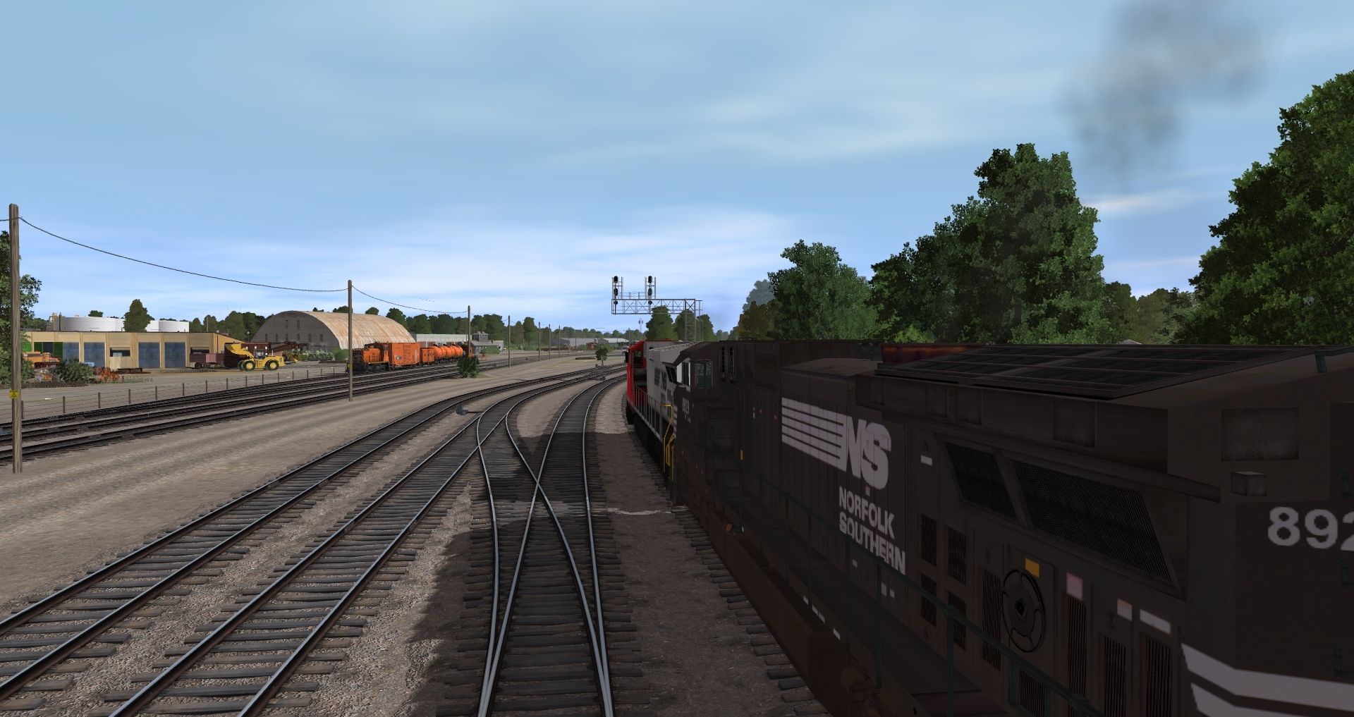 Tags: Trainz: A New Era, Norfolk Southern Yard Module, Norfolk Southern Yard Module - Default, NS Dash9 #8929, NS AC44C6CF #8520, RVSX SW1500, NS 50' ACF Boxcar 1, RVSX Tool Car, RVSX Crew Car/Dorm, Crane Undec highly weathered non powered DES, RVSX Chemical Cars, RVSX Weed Control Car, TILX 33585 Gal Tank Car weathered 1, Boxcar HiCube 60ft TTX DES