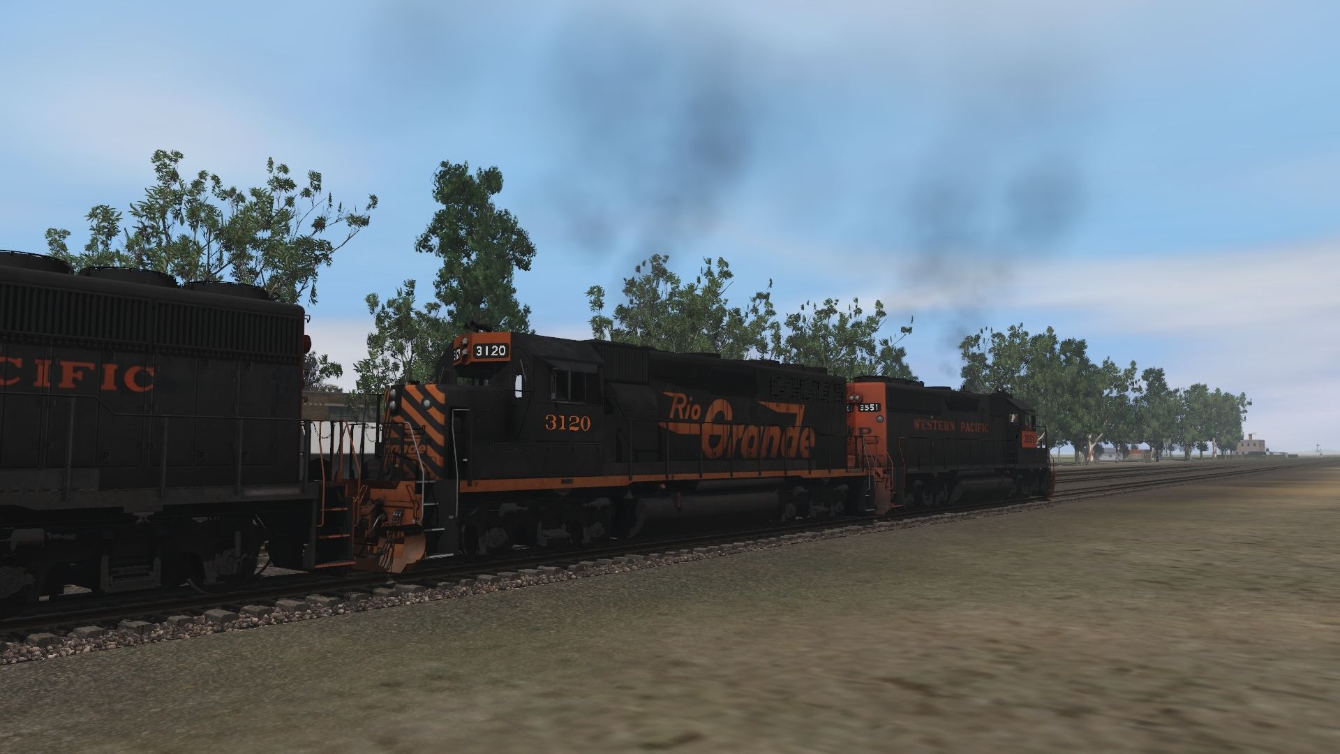 Tags: Trainz Railroad Simulator 2019, WP-SP Stkn-SJ-2019-0016, Default, GP40-2 DRGW, GP40-2 WP, 50ft Boxcar WVRC 7724, 50ft Boxcar WSOR 101502