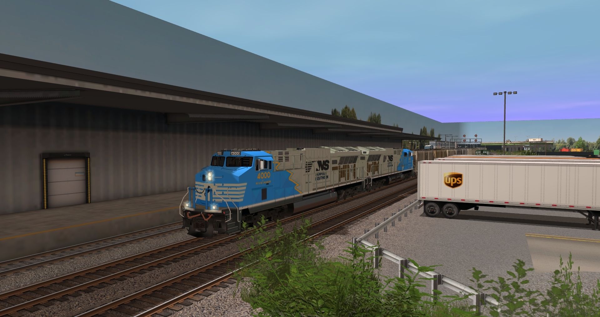 Tags: Trainz: A New Era, BNSF Chilli Sub V2, BNSF Chilli Sub V2 - Default, Locomotive NS AC44C6M 4000, Locomotive NS AC44C6M 4001, EVWR SW1500 #1503, Mijack Translift 1200R, EVWR SW1500 #1501, SW1500 CSX 1100 single light, SW1500 CSX 1102 single light, EMD SD40T-2 UP #4829, EMD SD40T-2 UP #4799, EMD SD40T-2 UP #2947, ES44AC Tier 4 Locomotive BNSF