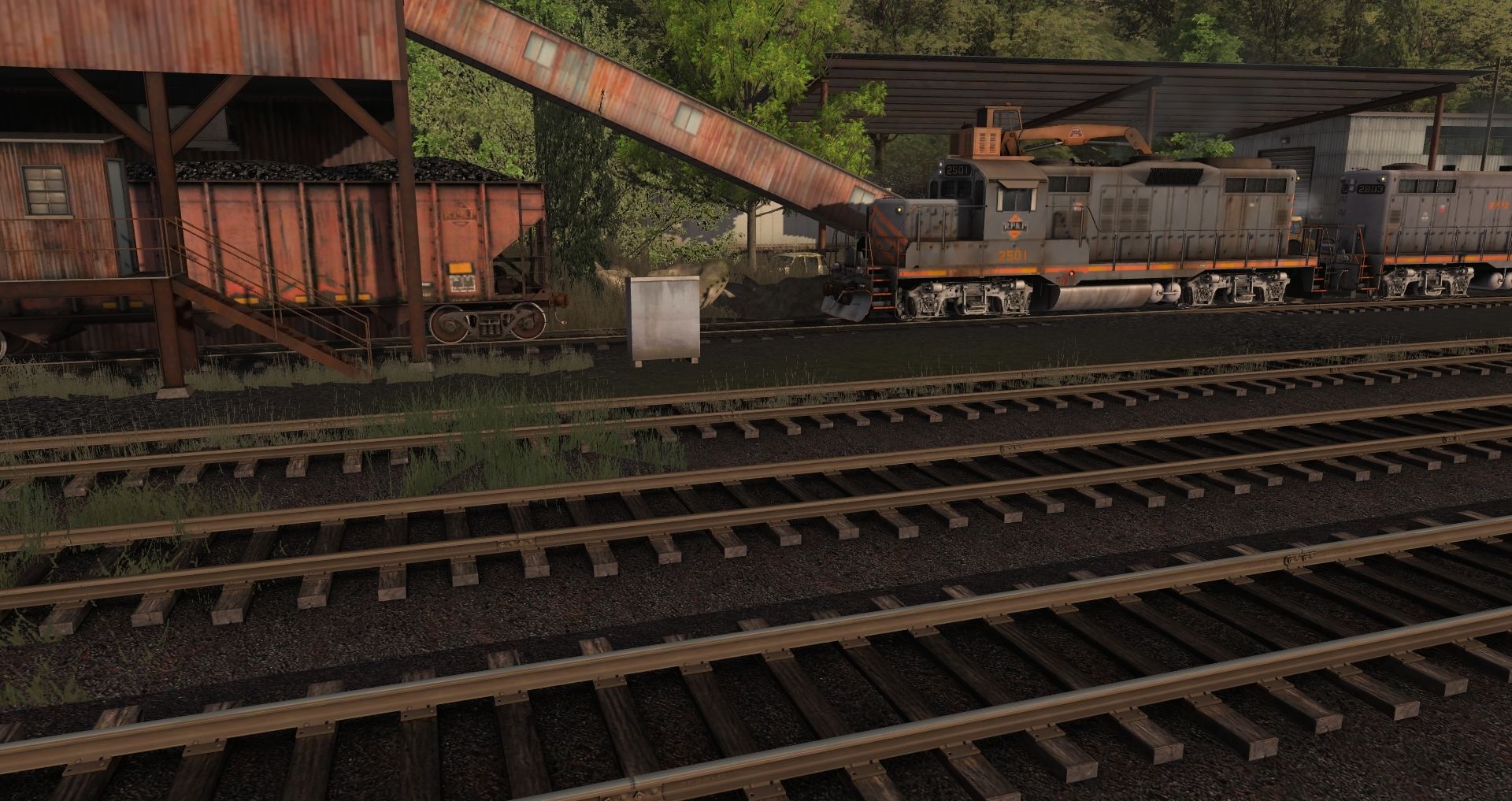 Posted by: 55patryk | Posted:2019-02-26 15:02:14 Caption: Tags: Trainz: A New Era, Coal Country, 03 - Coal Service, RPPX GP9 chop nose, RPPX GP9 high, RPPX 100 Ton Hopper, SVLX Log Rack Yellow
