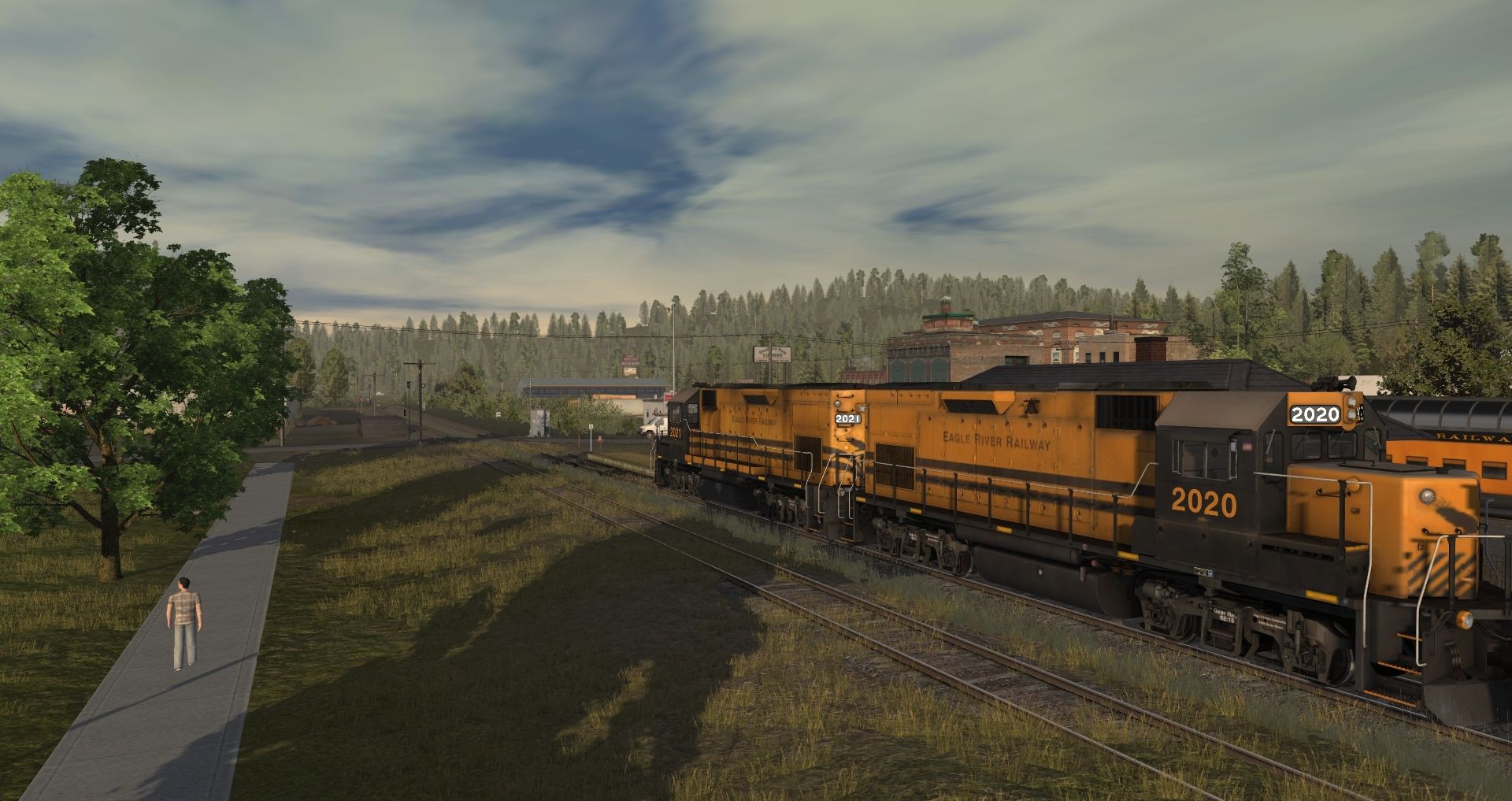 Tags: Trainz: A New Era, Eagle River Railway, 03 Wednesday - Delivery to Beaver Cove, ERSX GP15T 2020, ERSX GP15T 2021, ERSX GP40-2, ERSX Brake Control Car, ERSX 54ft flatcar, Eagle River 05 Super Dome, Eagle River 04 Concession Car