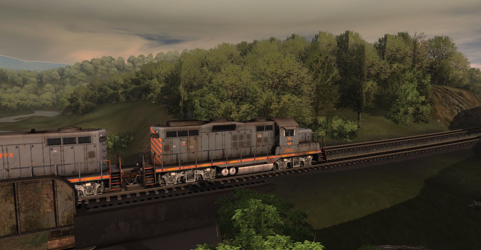 Tags: Trainz: A New Era, Coal Country, 03 - Coal Service, RPPX GP9 high, RPPX GP9 chop nose, RPPX GP18 (ex-CR), RPPX Coach Car #20, RPPX Coach Car #22, RPPX Coach Car #21, RPPX 100 Ton Hopper, SVLX Log Rack Yellow, RBOX 50' ACF Boxcar 1, JR 52ft Gondola CEFX 1, JR 52ft Gondola CEFX 2