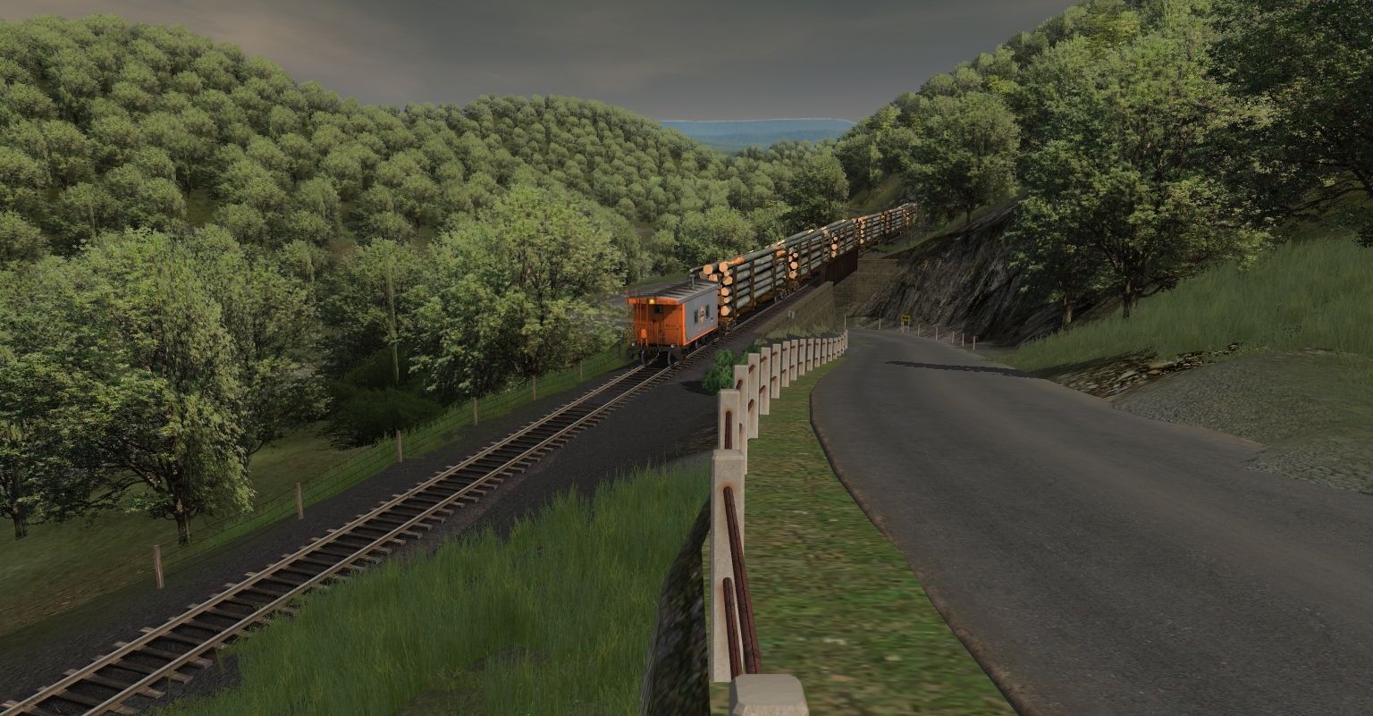 Tags: Trainz: A New Era, Coal Country, Log Service, RPPX GP18 (ex-CR), RPPX GP9 high, RPPX Transfer Caboose, SVLX Log Rack Yellow, RPPX 100 Ton Hopper, JR 52ft Gondola CEFX 1