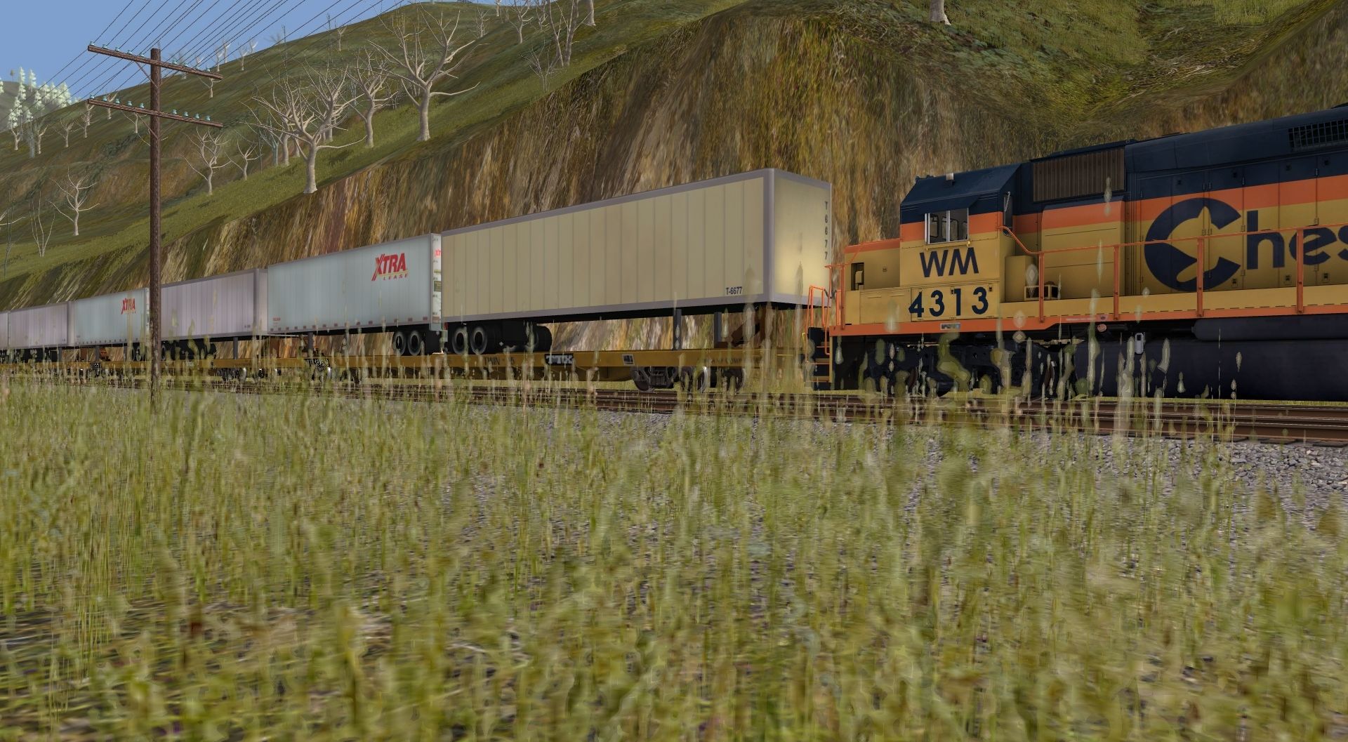 Tags: Trainz: A New Era, C&O Hinton Division, Chessie System GP40-2, GP30: CO #3029, TTX 89ft TOFC Flatcar, Chessie System Bay Window Caboose 1