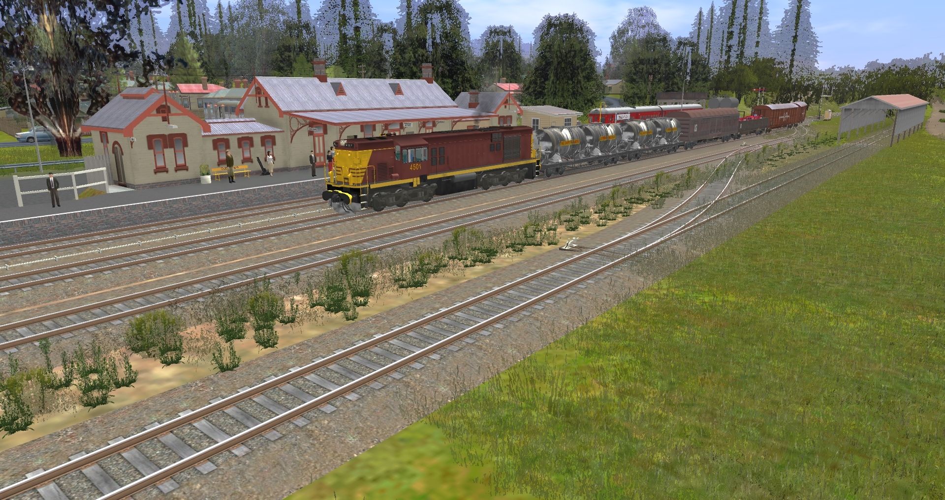Tags: Trainz: A New Era, NSW Queens Bay, Coastal Mixed Traffic, NSWGR 45 Class Reverse, NSW SRA 620 Class Railcar, NSW SRA 720 Class Railcar, NSWGR BMT, NSW SRA NLKY Louvre Van, NSW SRA NOBX Open Wagon Gunmetal, VR VSX T2c SG - 1980+, NSWGR IHG Brake Van