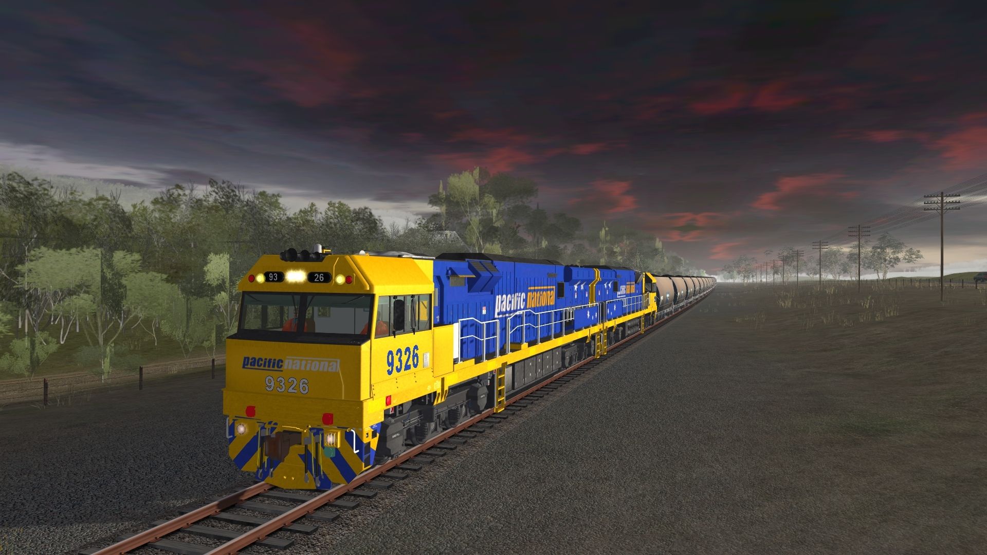 Tags: Trainz: A New Era, ARTC NSW Main South - VR North-East, Default, 9300 Class PN, 9200 Class PN, 6000 Class QRNational Eagle, NSW Pacific National 81 Class, NSW NHPH Coal Wagon (FULL)