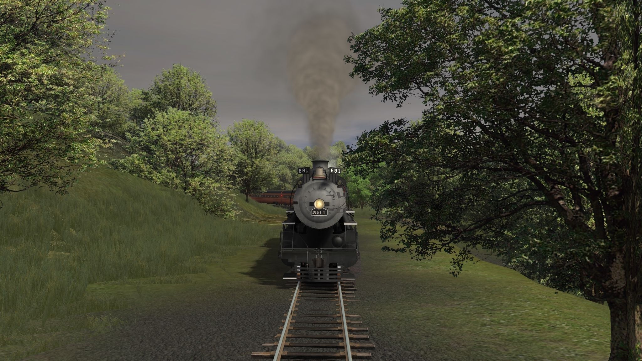 Tags: Trainz: A New Era, Coal Country, NKP Mikado Engine V2, NKP Mikado Tender V2, NKP Mikado 587 Tool Car Blue, PRR FOM PS18 Sleeper, PRR FOM POS21A Observation