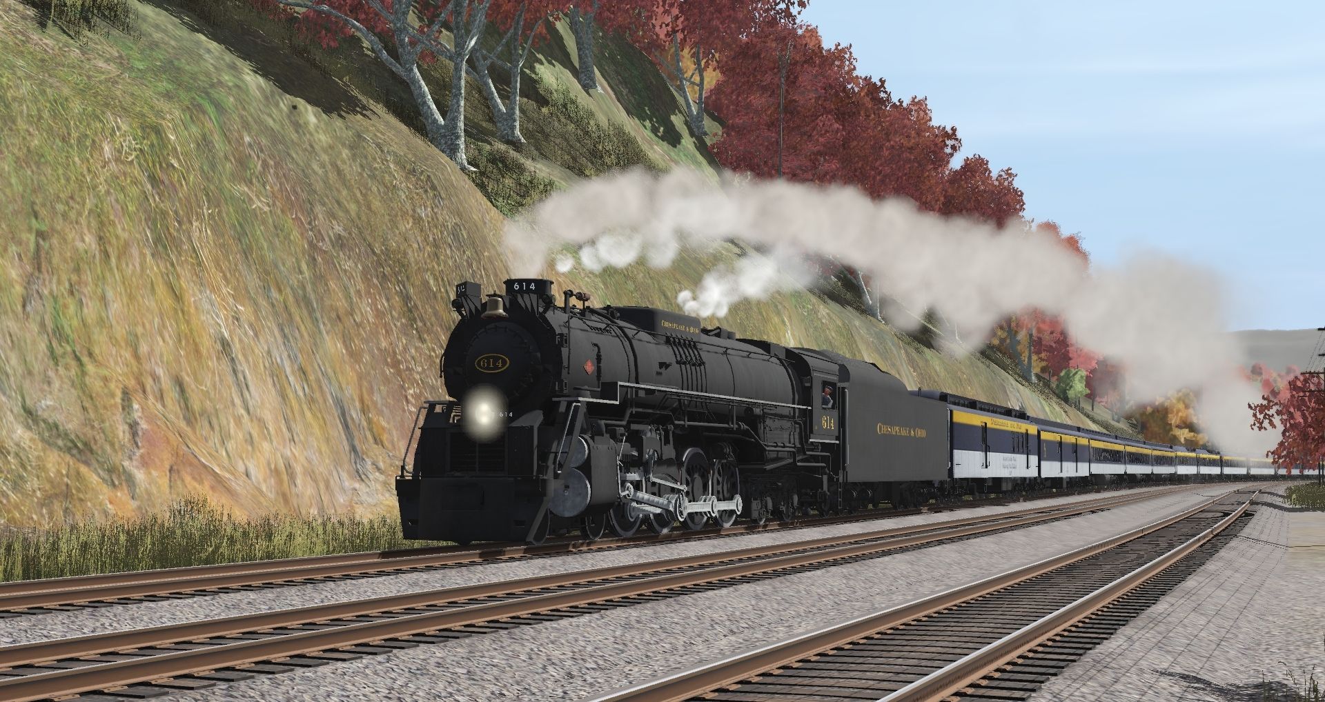 Tags: Trainz Railroad Simulator 2019, C&O Hinton Division, Default, C&O 614 Engine, C&O 614 Tender, C&O RPO 102, C&O Pullman Baggage 289, C&O Pullman Coach Car 710, C&O Pullman Coach Car 706, C&O Pullman Coach Car 715, C&O Pullman 10-1-2 'Windom', C&O Pullman 10-1-2 'Simon Kenton', C&O Pullman 8-3-1 'York Hall' , C&O Pullman 8-1-2 'Centrcroft'