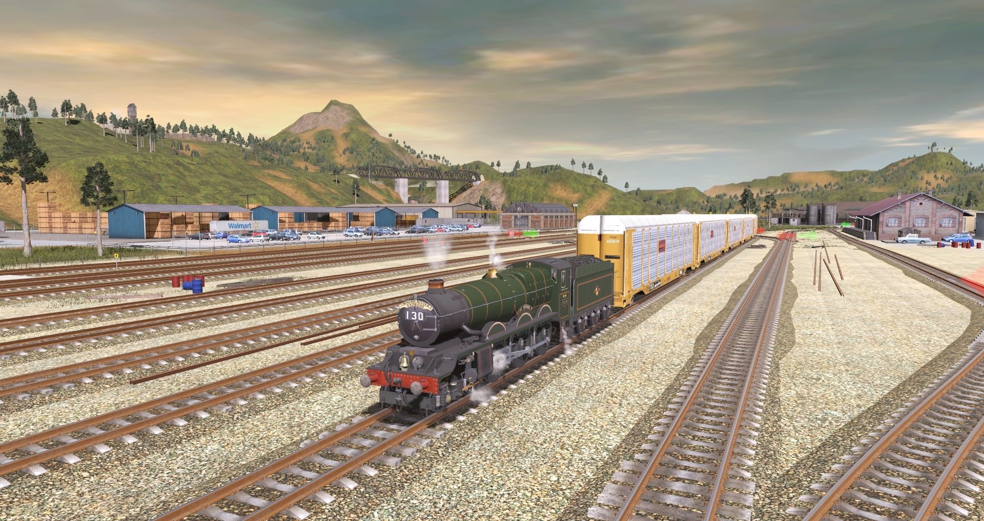 Tags: Trainz Railroad Simulator 2019, Kickstarter County 2, GWR King George V, PRR A5 94 Engine, GWR King late logo class tender, PRR I1sa Tender Coast to Coast Pre-War, Autorack TTGX - BNSF Logo