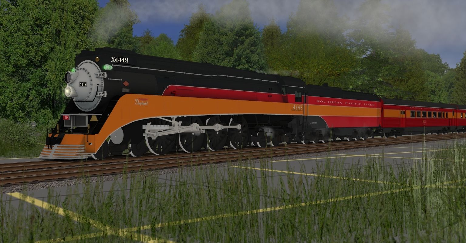 Tags: Trainz: A New Era, Happy Place RR, SP GS-4 Engine Daylight, SP GS-4 Tender Daylight Prewar, SP Coast Daylight Baggage-Chair Car, SP Coast Daylight Chair Car, SP Coast Daylight Parlor Car, SP Coast Daylight Articulated Chair Car - ACW, SP Coast Daylight Articulated Chair Car - ACM, SP Coast Daylight Parlor-Observation Car