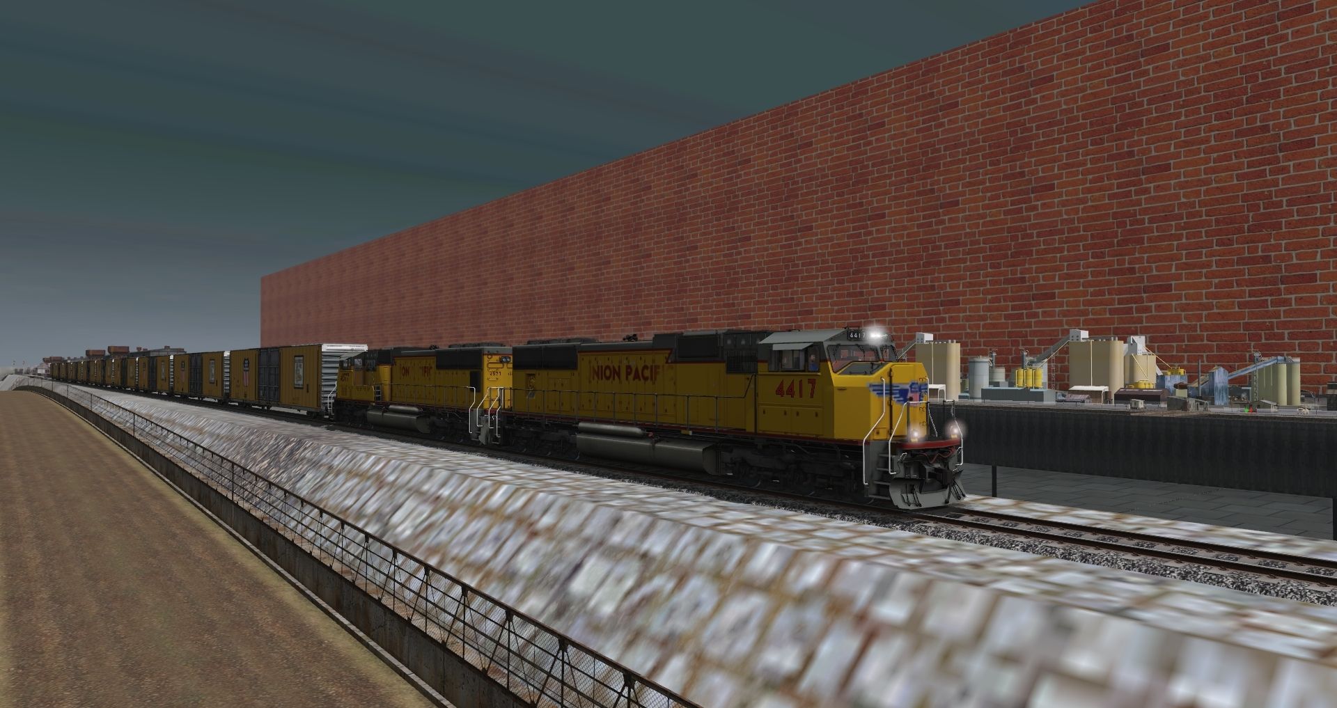 Tags: Trainz Railroad Simulator 2019, Port Zyd & Fulazturn Railroad - Model Trainz, Default, UP Flag painted SD70M, Utah Belt AC4400CW 4400-4450, NS C40-9W Primer, UP 980050-980090 1971
