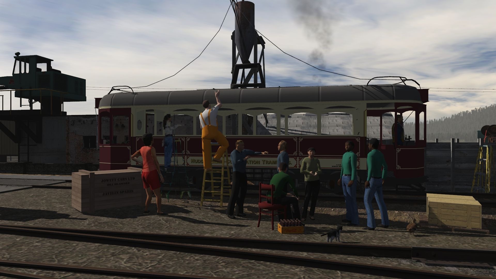 Tags: Trainz Railroad Simulator 2019, Eagle River Railway-restore scene, Default, Huddersfield Tram #27, Eagle River 2-8-0 Engine, Eagle River 2-8-0 Tender, ERSX 60Ft.9In. woodchip gondola, Eagle River 07 Wood Observation, ERSX 54ft flatcar, Eagle River 02 Wood Coach, Eagle River 03 Boonton Coach, Eagle River 01 Wood Combine, Eagle River 06 Open Air Coach, Eagle River 05 Super Dome