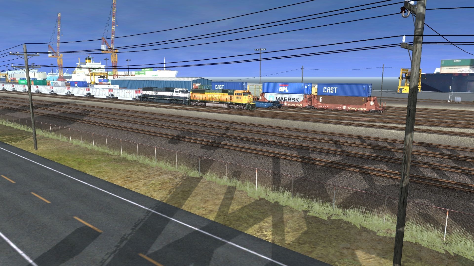 Tags: Trainz: A New Era, Beno Rail World v 1.0, BNSF SD70MAC H2W, BNSF SD70MAC (BN exec patch w/swoosh), AICX SW1500, Mijack Translift 1200R, BNSF ES44DC Faded, BNSF H3 Dash 9-44CW, 89ft Autorack Tri-Level CSX # 864582, BNSF Gunderson Wellcar Unit A, 73ft Centerbeam BCOL, BNSF Gunderson Wellcar Unit B, 60ft HC Boxcar BNSF Ver2
