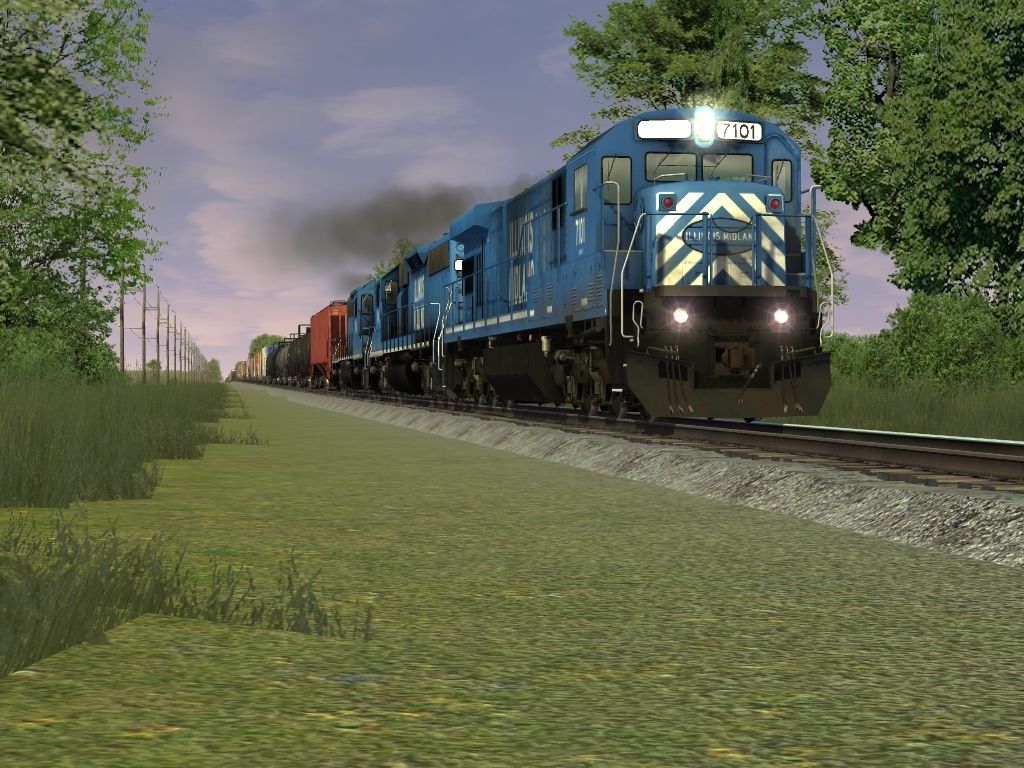 Tags: Trainz: A New Era, Illinois Midland, Default, IMLR C30-7H 7101, IMLR SD40-2 7046, IMLR SD40-2 7033, GACX Trinity 3 Bay Hopper, T108 CRGX 29476-29700 TRN 29188 gal, TILX 20800 Gallon Tank Car 194999, TILX(black) 13818 gal tank car, UTLX 23000 gal Funnel-Flow tank car, T108 AZXX 20000-20111 TRN 29188 gal, 73ft Centerbeam ATW 2, RBOX 38133 50ft Boxcar FMC