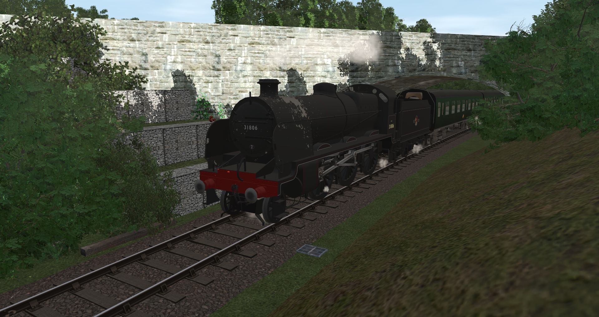 Tags: Trainz Railroad Simulator 2019, Swanage Railway, Editing Session, SR U class, U class tender BR late crest, BR Mk1 BSK Green, SR luggage van, IOW Comp 1 coach, BR YGH Olive, BR 13T Hybar Open Diag 1/039, SR tarped, SR conflat detailed, SR 30 foot van, Bullied Eastleigh Brake Comp