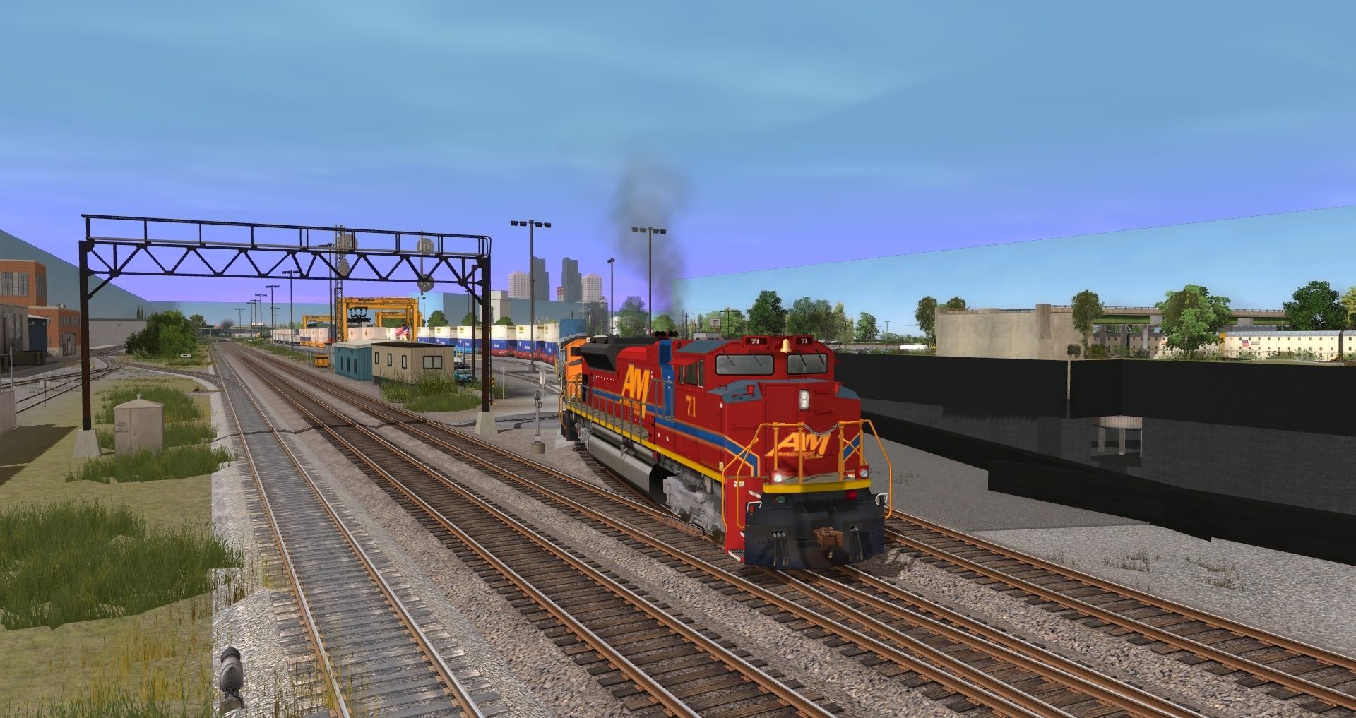 Tags: Trainz: A New Era, BNSF Chilli Sub V2, BNSF Chilli Sub V2 - Default, EMD SD70ACe A&M 71 DES, EMD SD70ACe BNSF 8749-8799, ES44AC Tier 4 Locomotive NS Monongahela Heritage, Mijack Translift 1200R, EVWR SW1500 #1503, EVWR SW1500 #1501, SW1500 CSX 1100 single light, SW1500 CSX 1102 single light, EMD SD70ACe CSX, EMD SD70ACe SP Daylight #1996, EMD SD70ACE WP #1983