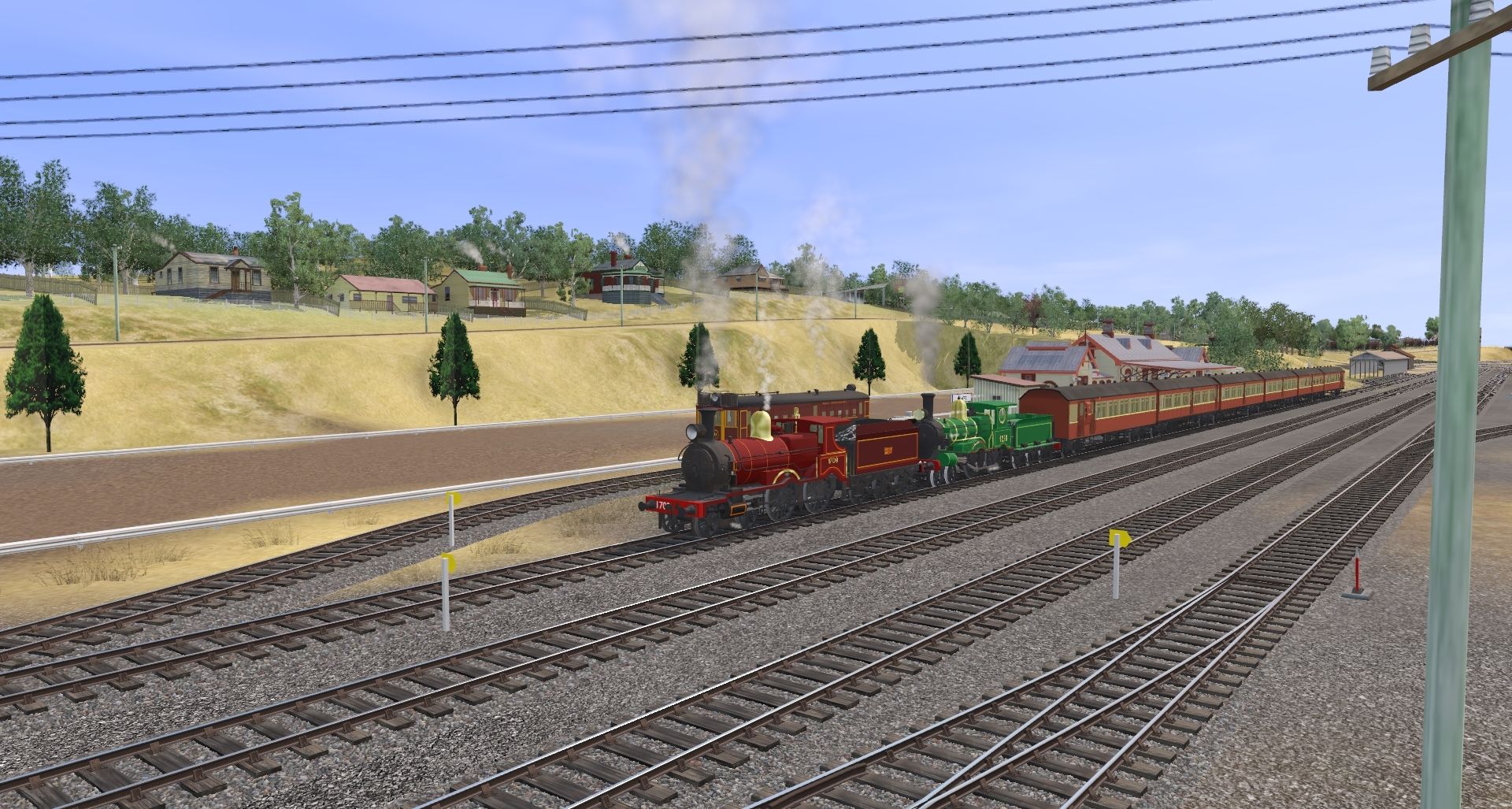 Tags: Trainz Railroad Simulator 2019, WeddinNSW V4 (TRS2019), WeddinNSW V4 (TRS2019) - Default, NSWGR Z17 Loco, NSWGR Z12 green Loco, NSWGR CPH Railmotor, NSWGR Z17 tender, NSWGR Z12 green tender, NSWGR R Set HR 2nd Class Car - Tuscan and Russet livery (The Caves Express Southern Highlands Express The Fish) (TS12 SP1 HF4), NSWGR R Set RBR 2nd Class Buffet Car - Tuscan and Russet livery (The Caves Express Southern Highlands Express The Fish) (TS12 SP1 HF4), NSWGR R Set BR 2nd Class Car - Tuscan and Russet livery (The Caves Express Southern Highlands Express The Fish) (TS12 SP1 HF4), NSWGR R Set FR 1st Class Car - Tuscan and Russet livery (The Caves Express Southern Highlands Express The Fish) (TS12 SP1 HF4)