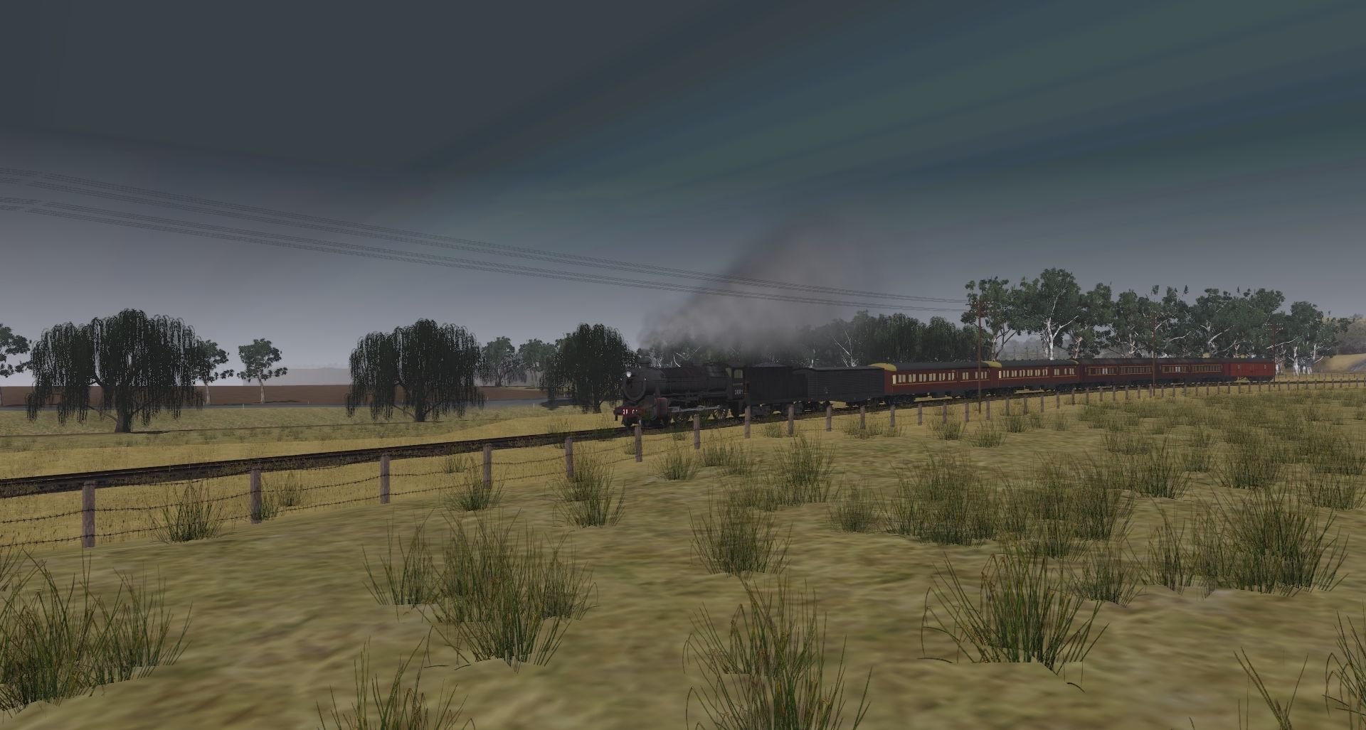 Tags: Trainz Railroad Simulator 2019, Lines to the Lachlan (TRS19) BETA-Blayney To Cowra 01, Lines to the Lachlan (TRS19) BETA-Blayney To Cowra 01 - Default, NSWGR C36 Loco Black, NSWGR C36 Tender Black, NSWGR MLV Louvre Van (Mk1) 1935, NSWGR 12 wheel MCE composite car, NSWGR ACS 12 wheel composite sleeper car, NSWGR EHO Car Guards and Mail - Parcel Van