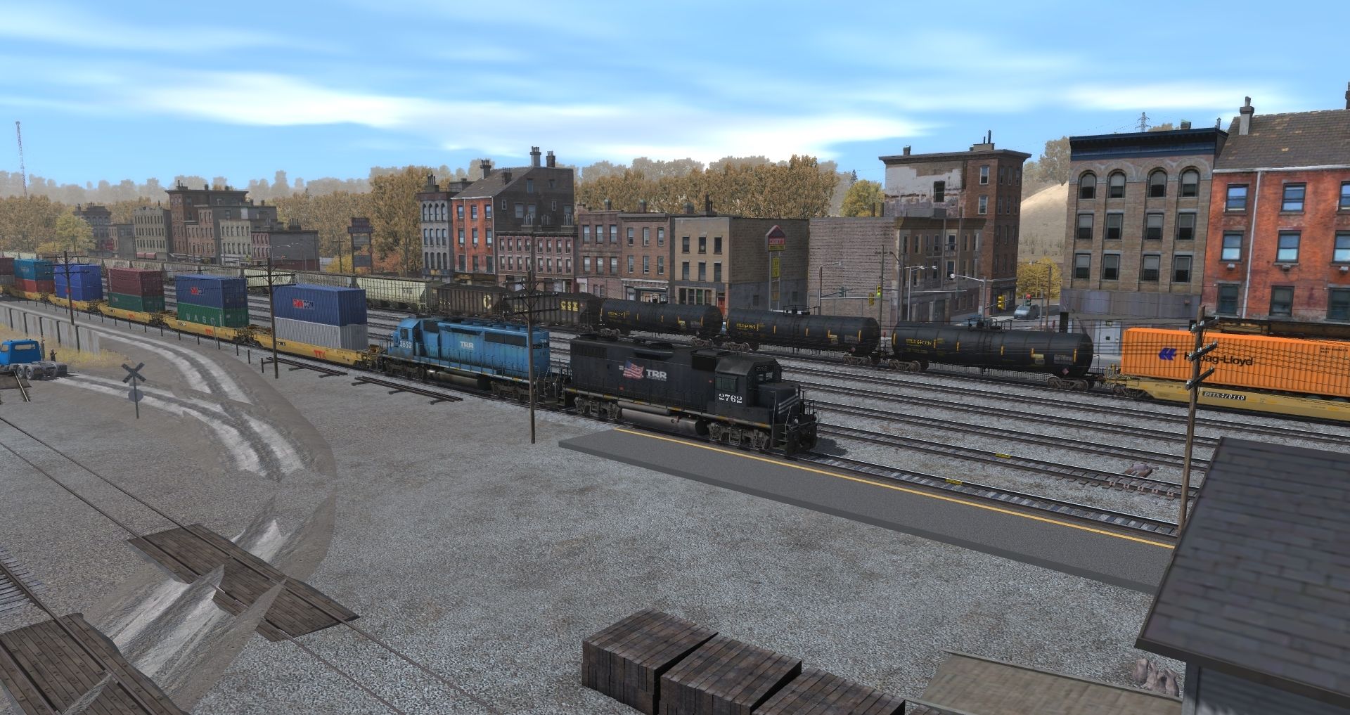 Tags: Trainz: A New Era, Tidewater Point Rail (remake c), Container delivery, TRR GP38-2, TRR railcar mover, TRR SD40-2 patched, NS C30-7, AP53 TTX Wellcar B, AP53 TTX Wellcar C, AP53 TTX Wellcar A, UTLX 23000 gal Funnel-Flow tank car, CSX 100 Ton Hopper, CSXT LO 4750 3 bay